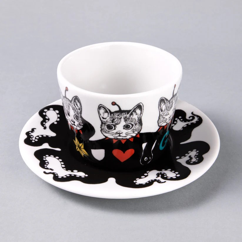 日本 樋口裕子Higuchi Yuko 九谷烧咖啡杯 碟 套装 章鱼猫
