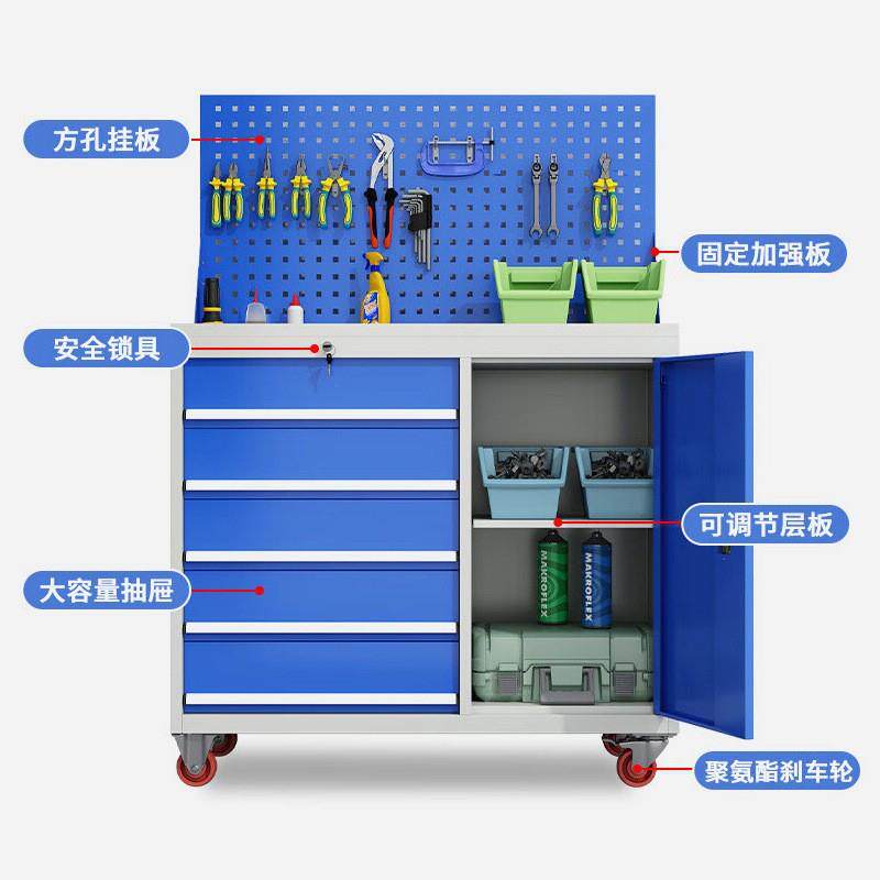 五金工具柜加厚可移动工具物料架汽修配件工具车多功能挂板架推车