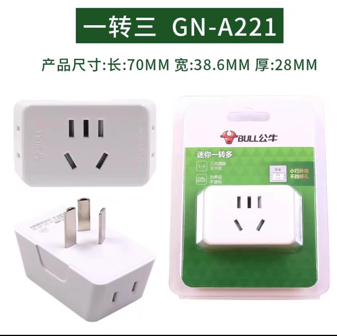 公牛插座转换转移器床头沙发后无线扩展插头宿舍用一分三薄迷你