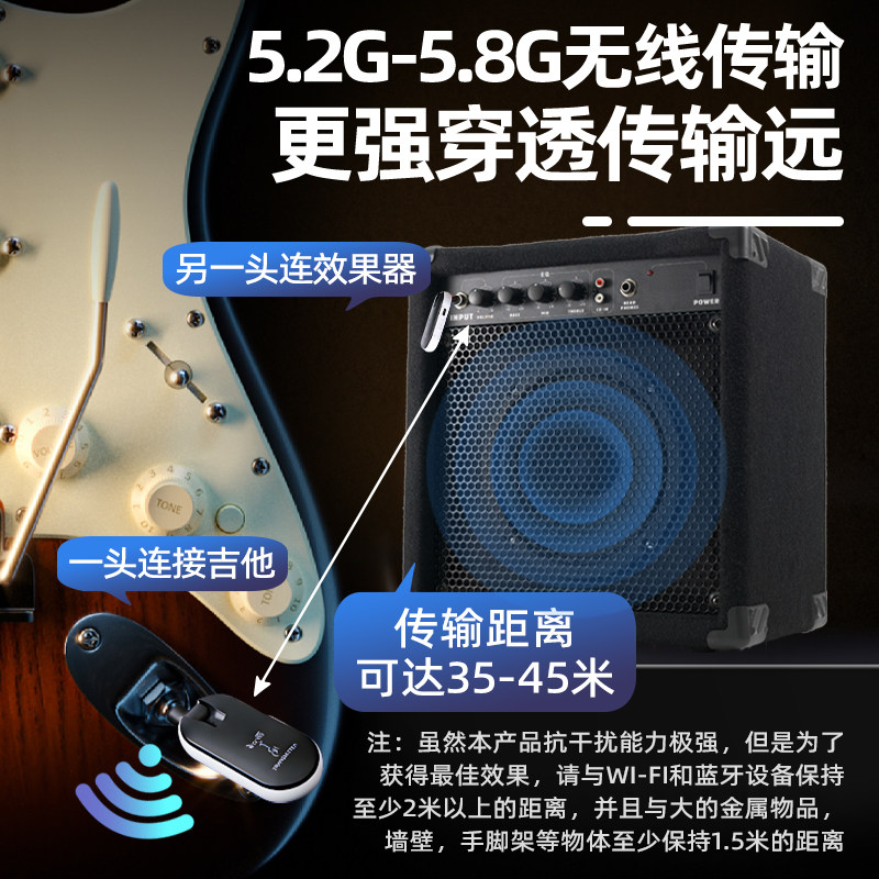 电吉他钢琴贝斯连接线音频拾音传输器无线发射接收器乐器专用配件
