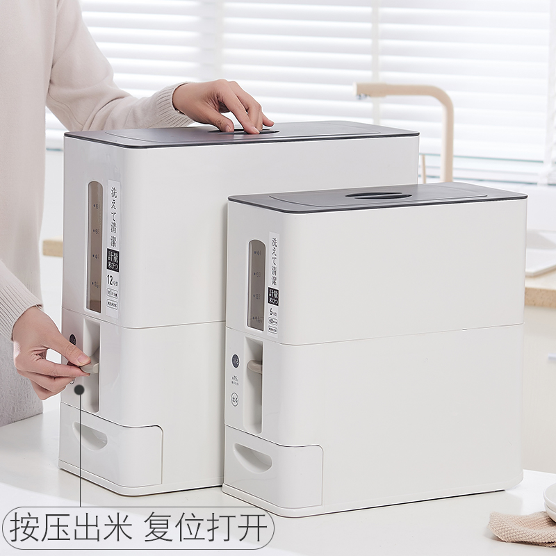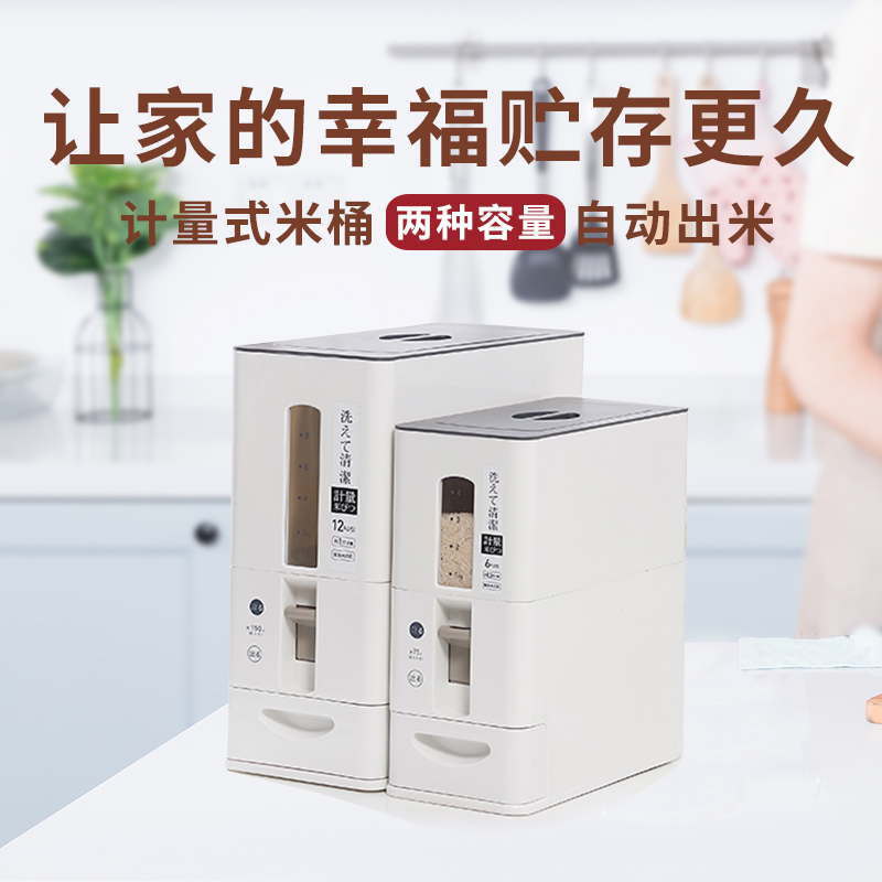 日本计量米桶家用防虫防潮密封米箱自动出米缸放大米储存器收纳盒