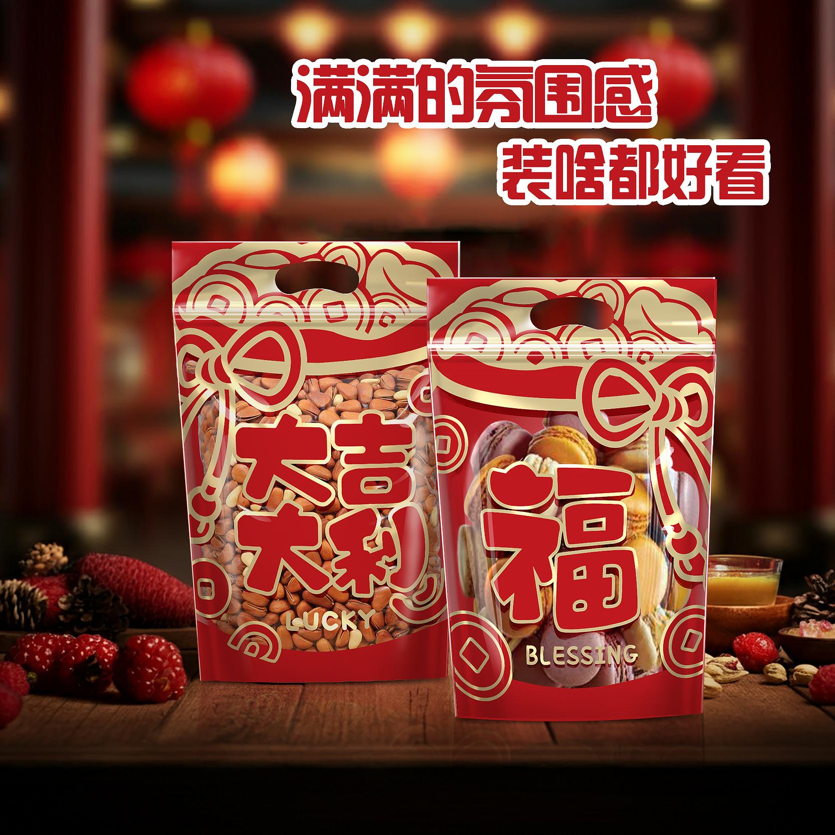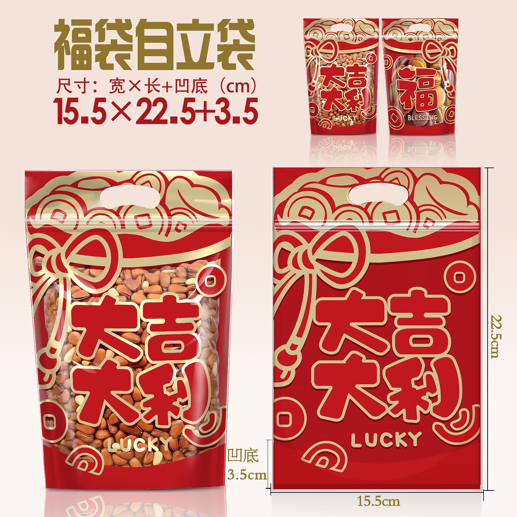 新年货包装礼品袋喜事糖果手提坚果干果自封袋零食食品密封口袋子