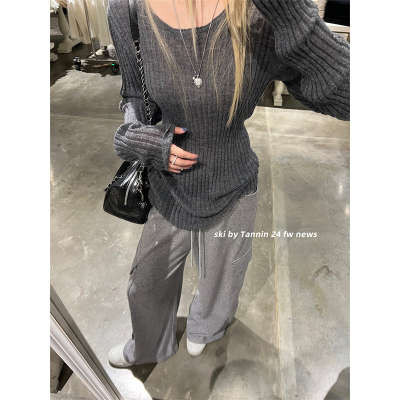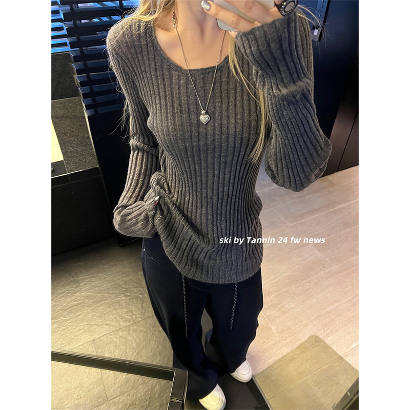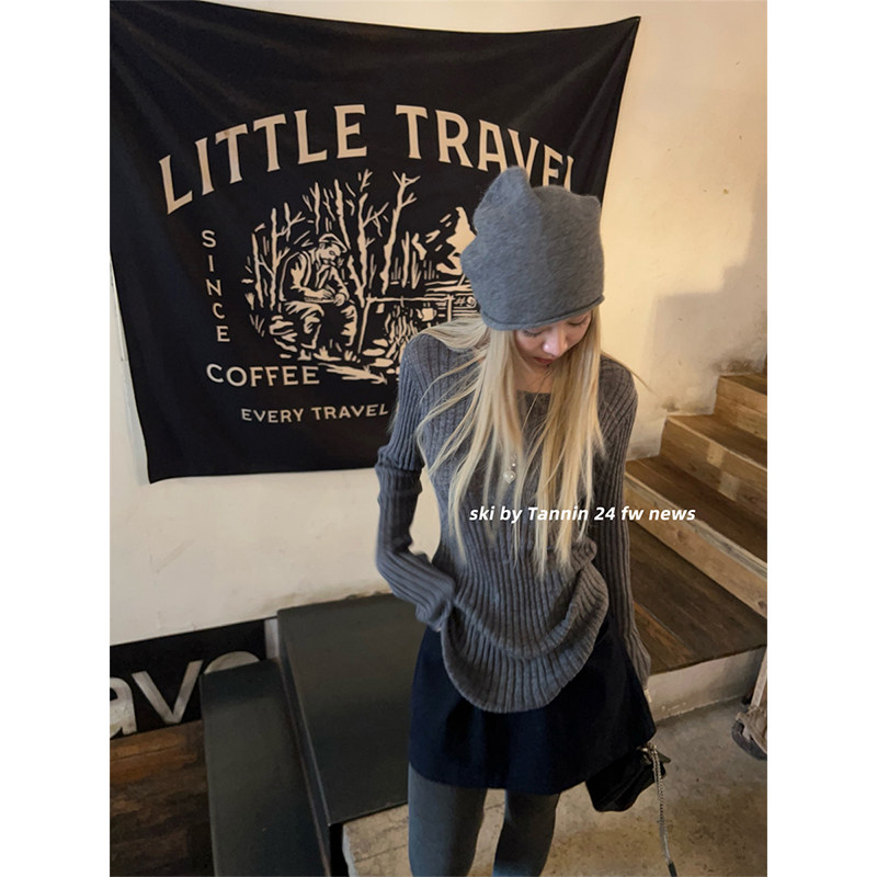 ski by Tannin赤兔达妹超细马海毛堆感针织打底女新显瘦性感上衣