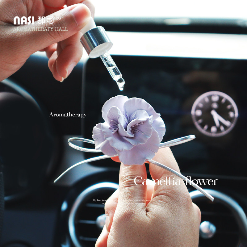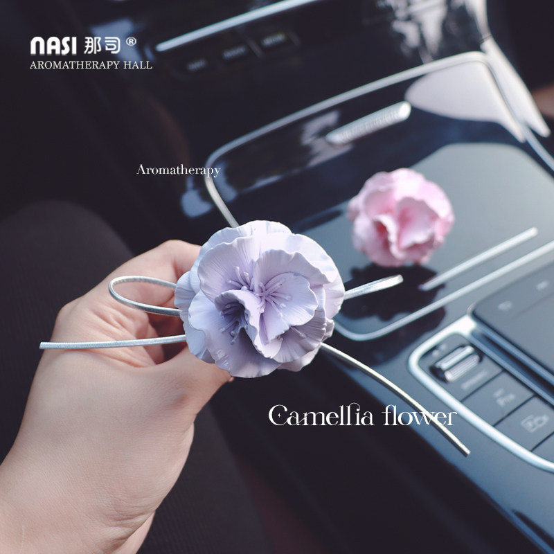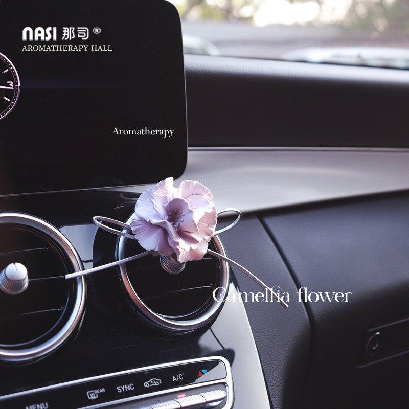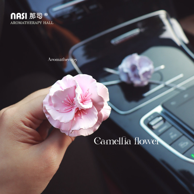 山茶花车载香水香薰车内出风口装饰花朵扩香石女神香氛摆件高级感
