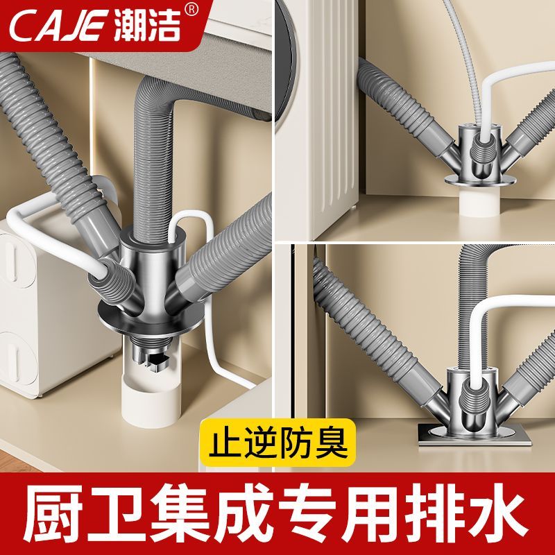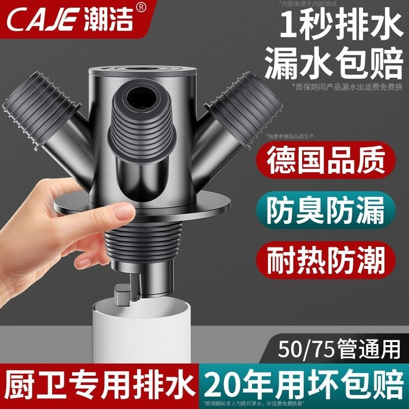 潮洁德国下水器三通排水管通用厨房洗菜水槽防堵塞多管排水