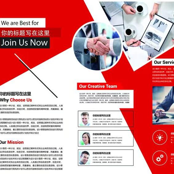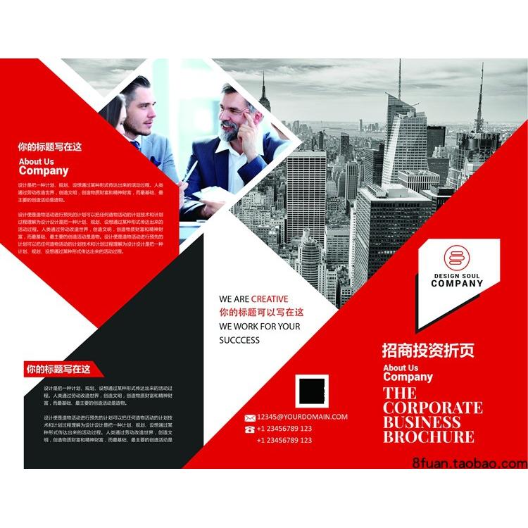 创意红色时尚通用投资咨询服务商务公司宣传广告单三折页PSD素材