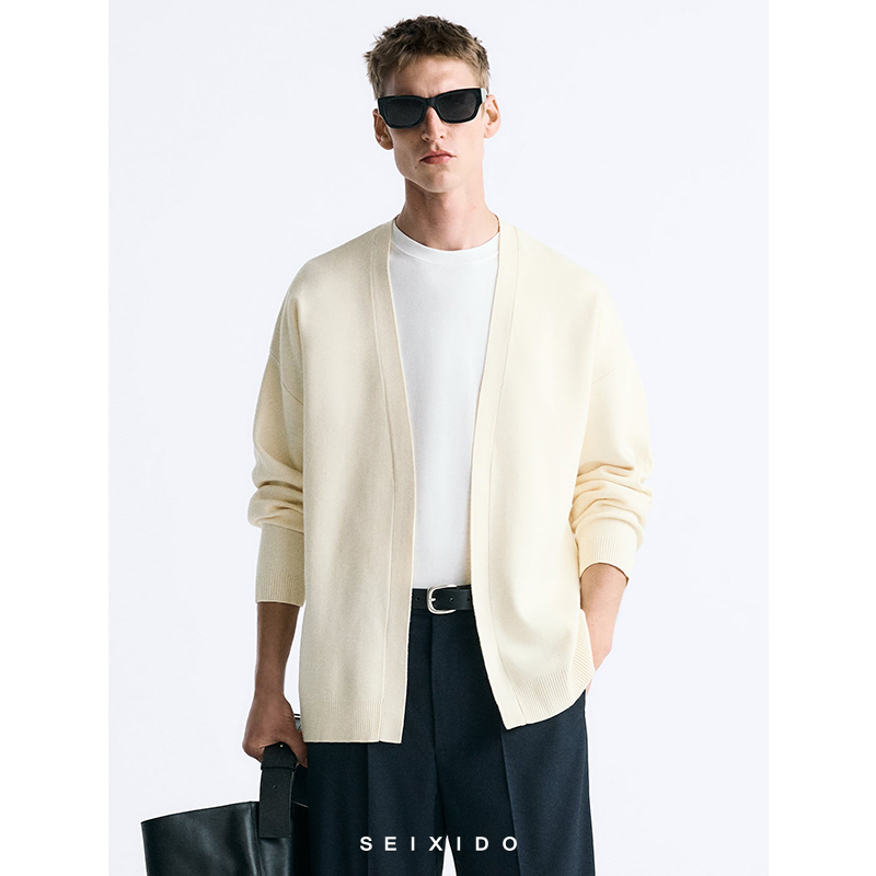 柜319!秋冬款男装无领针织开衫9598328 803纯色毛衣外套9598/328