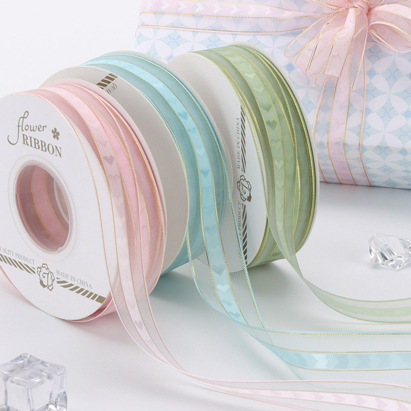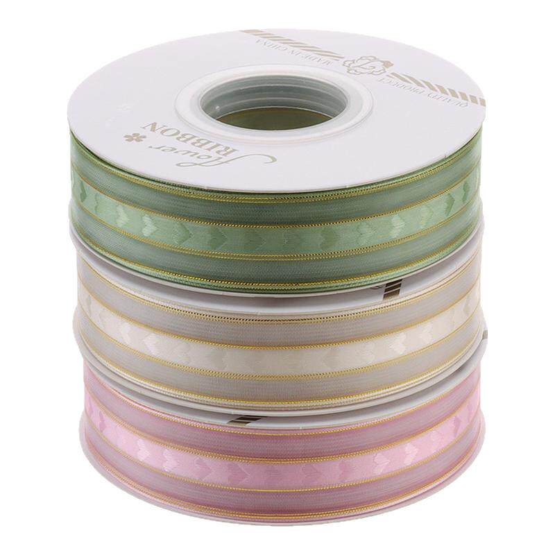 2.2cm爱心金丝中缎边纱 鲜花礼品盒蛋糕DIY包装材料网纱带雪纱带