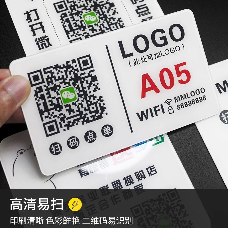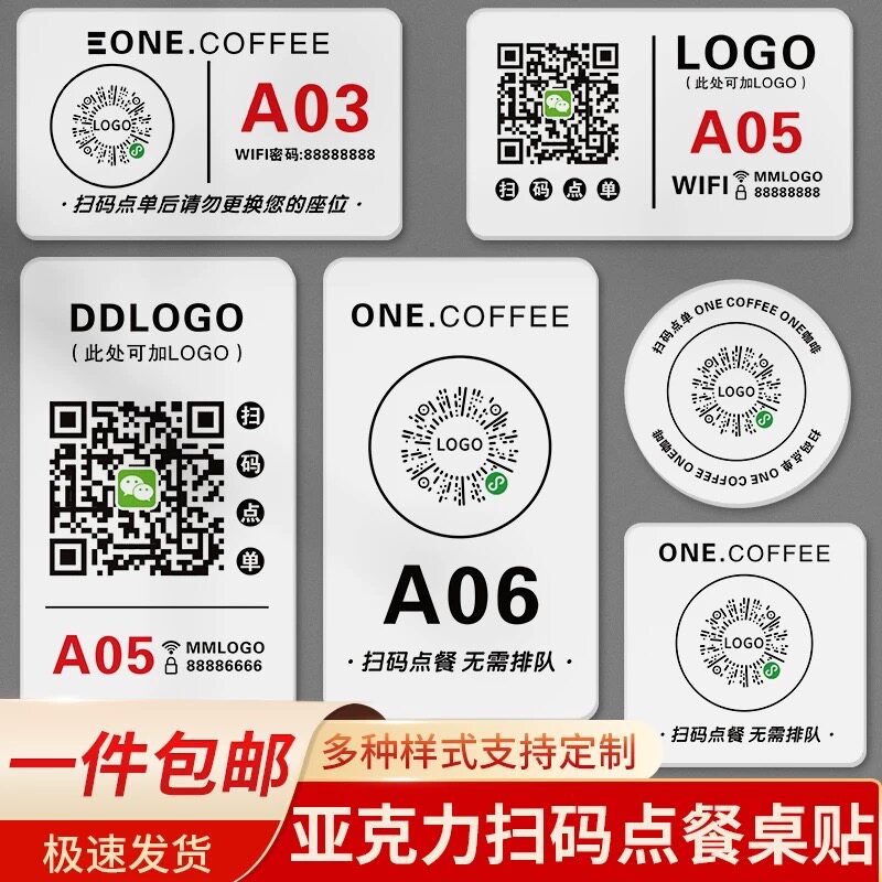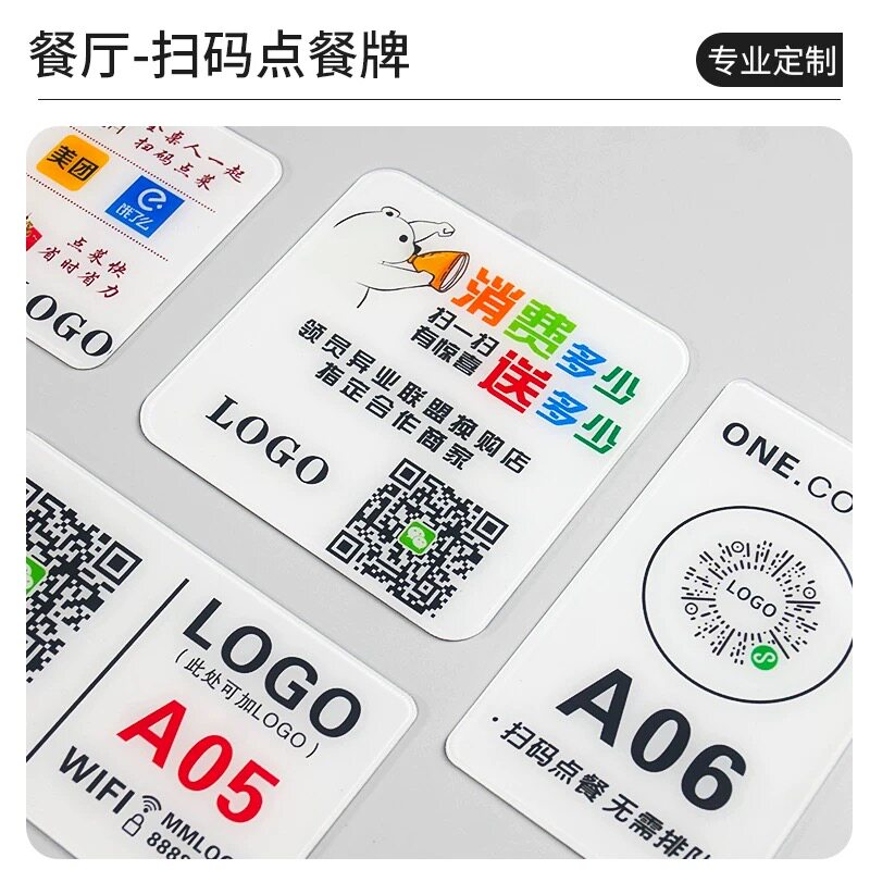 扫码点餐桌面标志牌点单点菜提示牌扫一扫二维码付款店铺咖啡餐饮奶茶店贴牌定制订做贴纸桌位号标识牌亚克力
