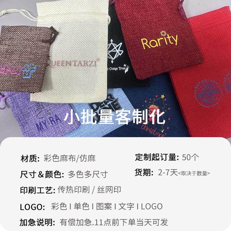 50个LOGO客制化彩色仿麻布袋饰品文玩包装抽绳袋配袋礼品袋收纳袋