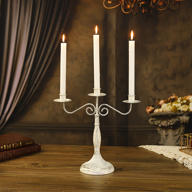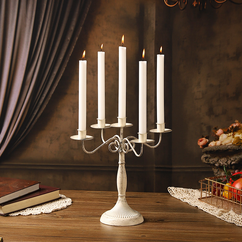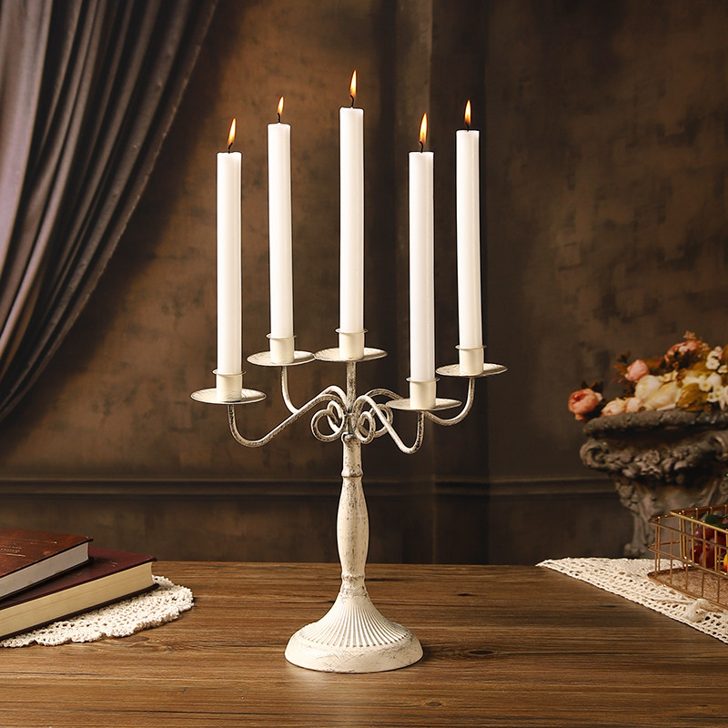复古白色五头铁艺烛台摆件西餐烛光蜡烛台桌面装饰品婚庆拍摄道具