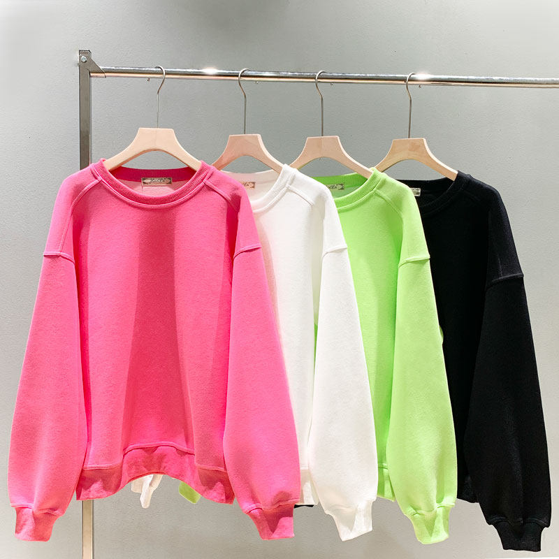 设计感小众薄款长袖卫衣女2025春秋装新款宽松小个子加绒纯色上衣