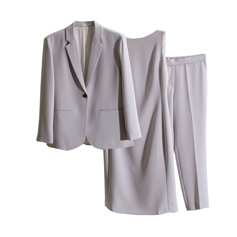 给力省6K~一年四季款!三醋酸纤维混纺西装外套+连衣裙+裤子套装
