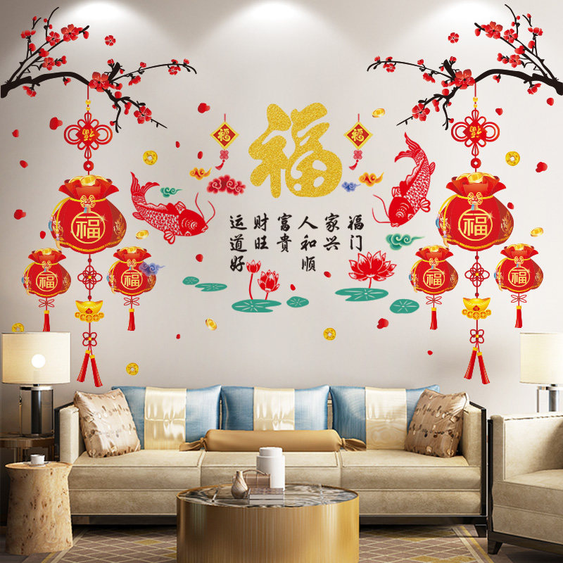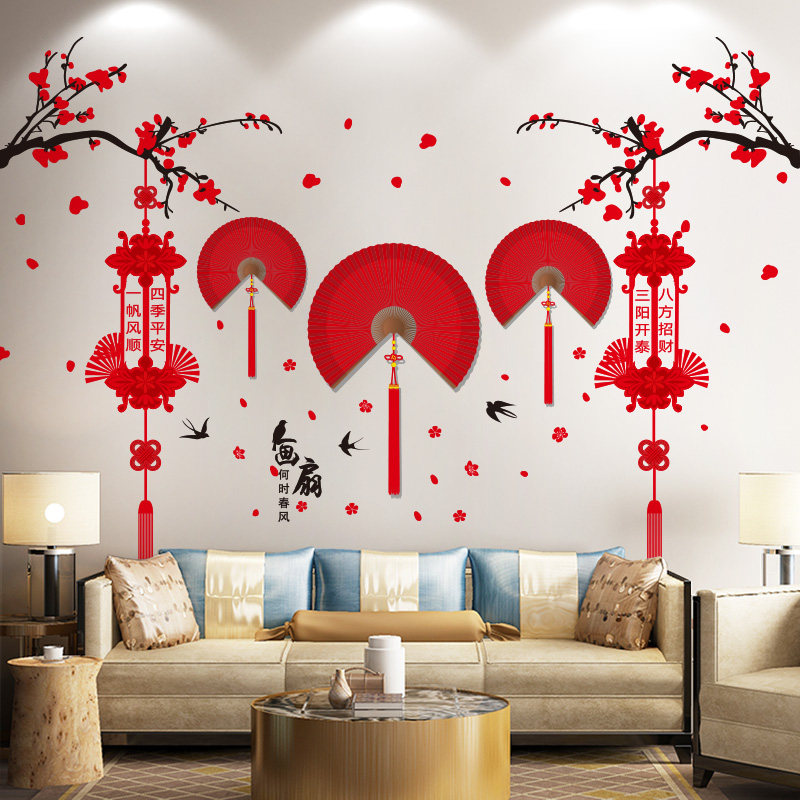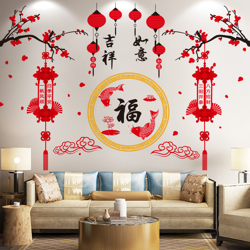 客厅沙发电视背景墙面装饰贴纸自粘3D立体墙贴画年画新年春节墙画