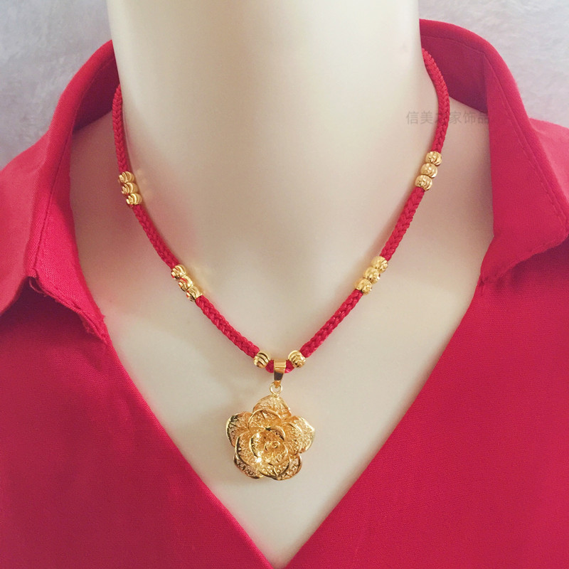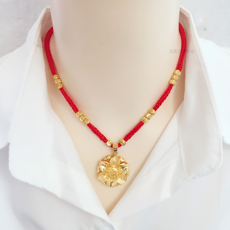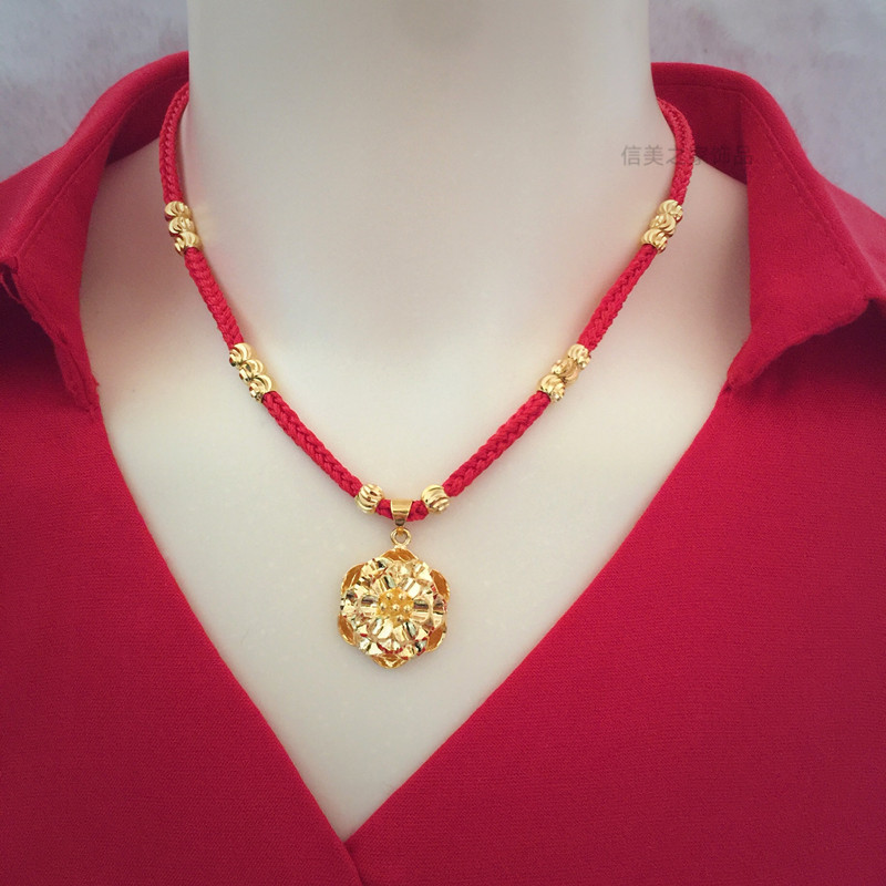 红绳子项链女原创手工编织流行首饰镀金项饰吊坠时尚信美饰品新款