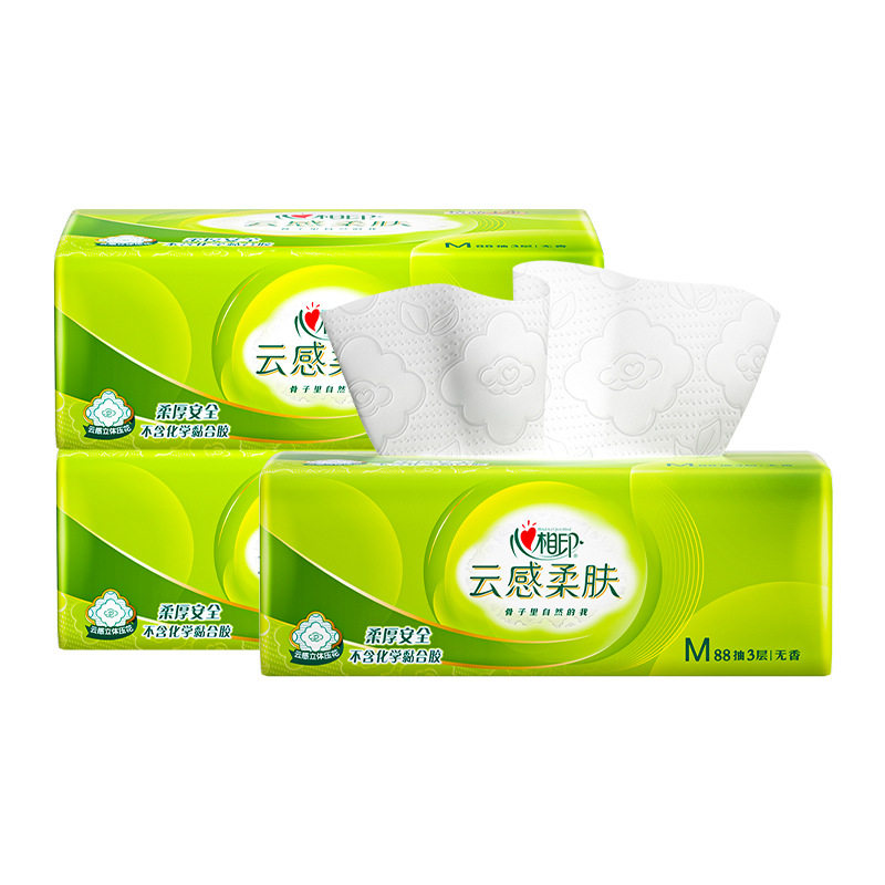 3包心相印云感柔肤M码3层88抽152x190家用大包抽纸卫生纸纸巾