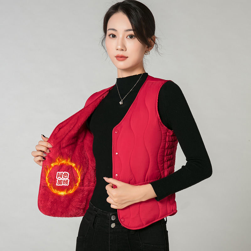 冬季马夹加绒加厚保暖女士宽松大码妈妈装小坎马甲内外穿务袖棉服