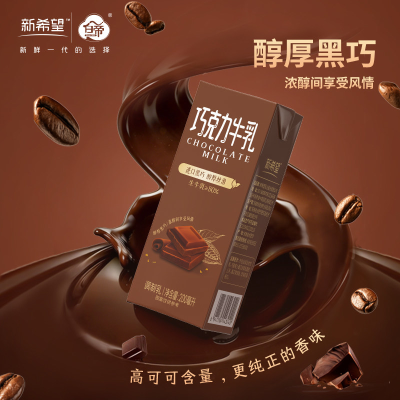 新希望巧克力牛乳200ml*12盒进口黑巧风味牛奶常温调制乳