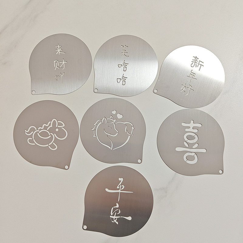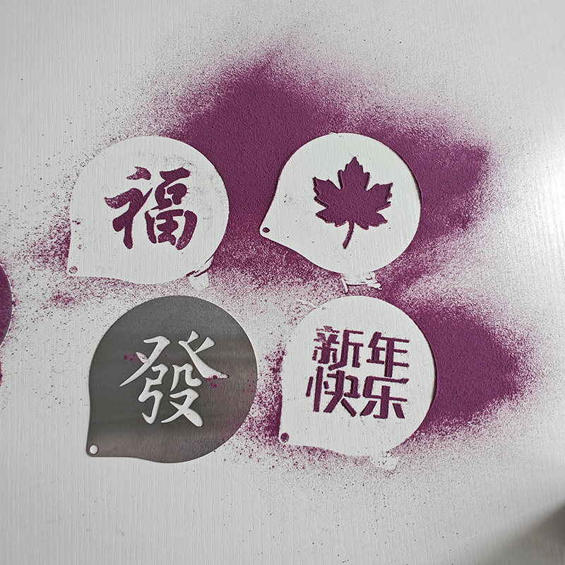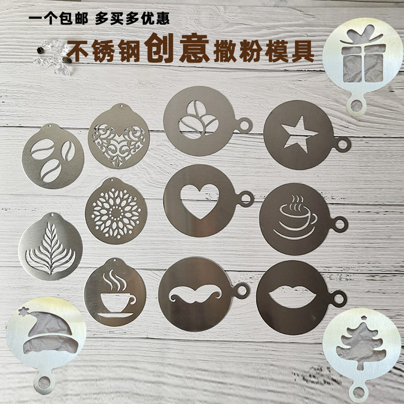 不锈钢咖啡拉花模具發福爱心新年快乐杯子星星创意奶茶撒粉印花模