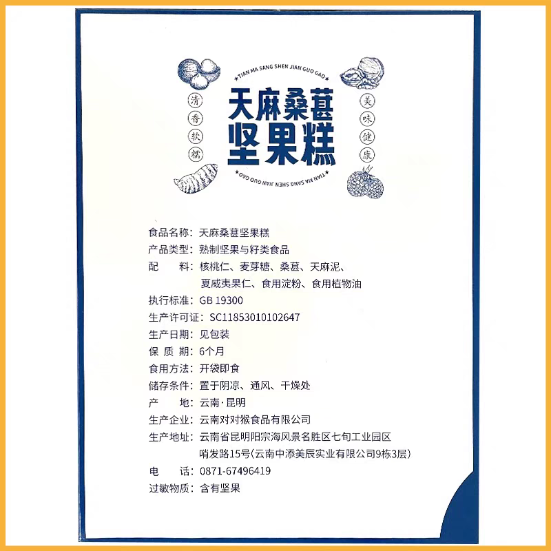 对对猴天麻桑葚坚果糕云南特产熟制坚果糕点小吃零食伴手礼盒袋装