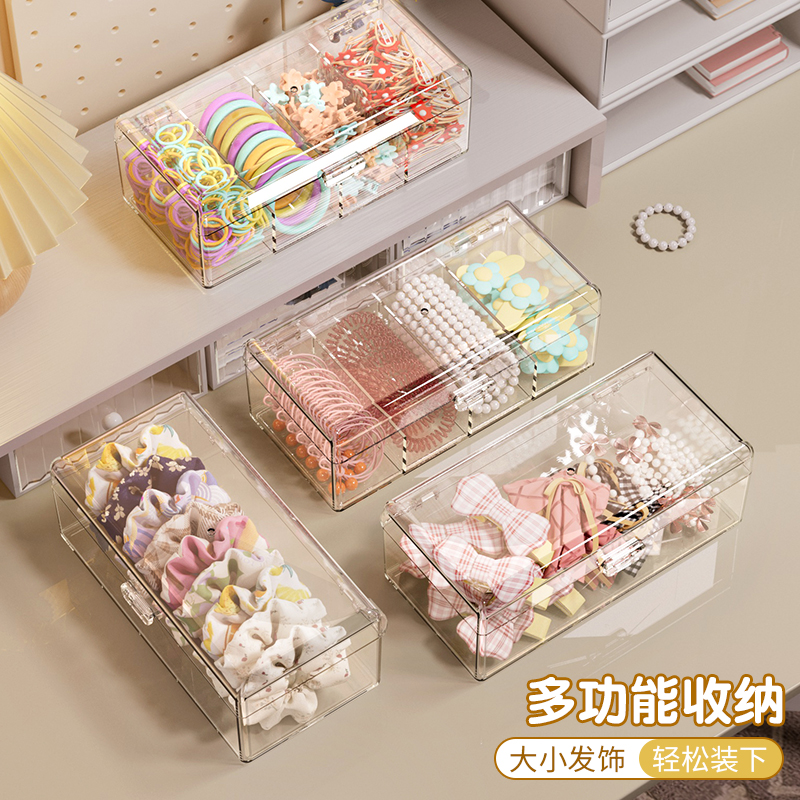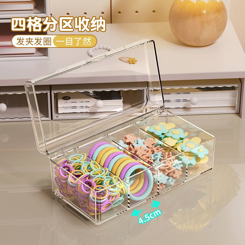 儿童发饰收纳盒抓夹皮筋发卡头绳桌面透明分格整理女童饰品首饰盒