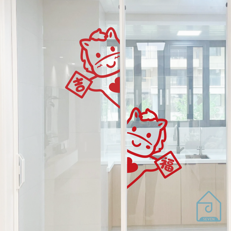2026马年图案福字过新年春节喜庆布置柜子玻璃大门入户玄关贴纸字