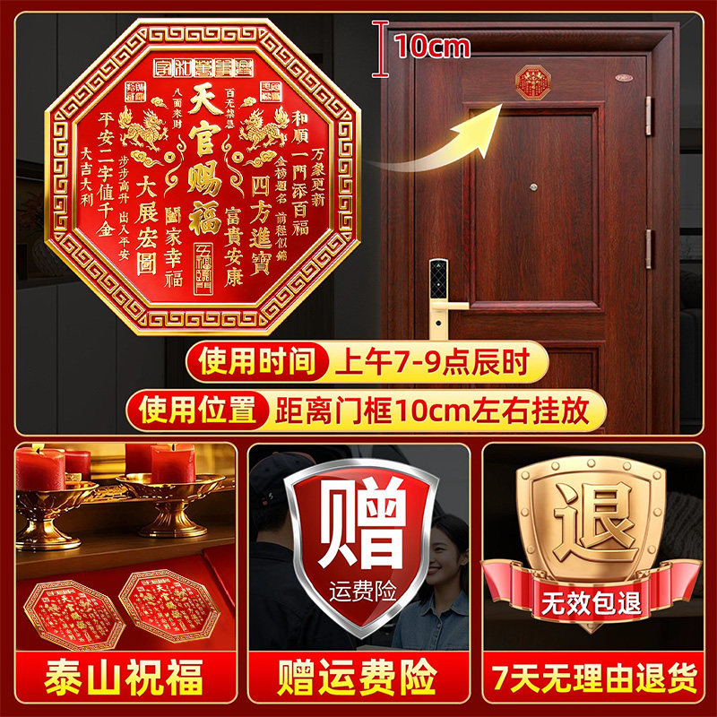 天官赐福门贴入户门牌2026新款铜牌金属麒麟农村大门头正品门神贴