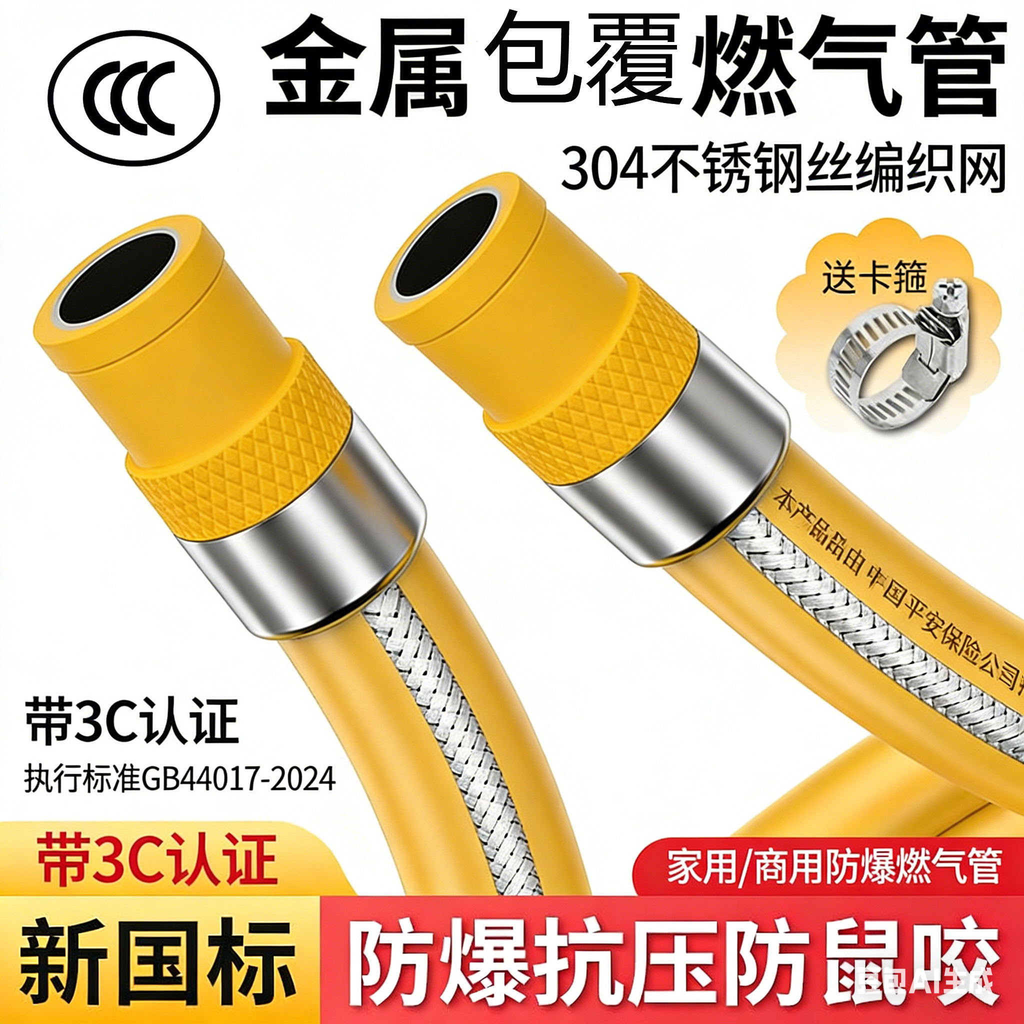 三层钢丝金属包覆燃气管液化气连接管燃气灶防爆管中压煤气管软管