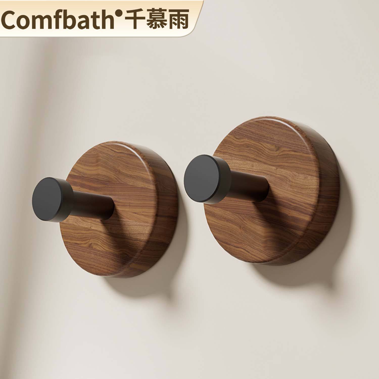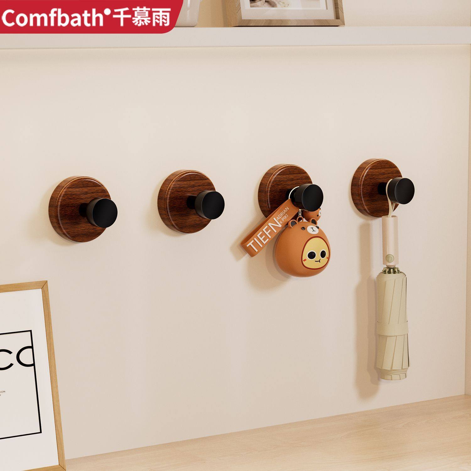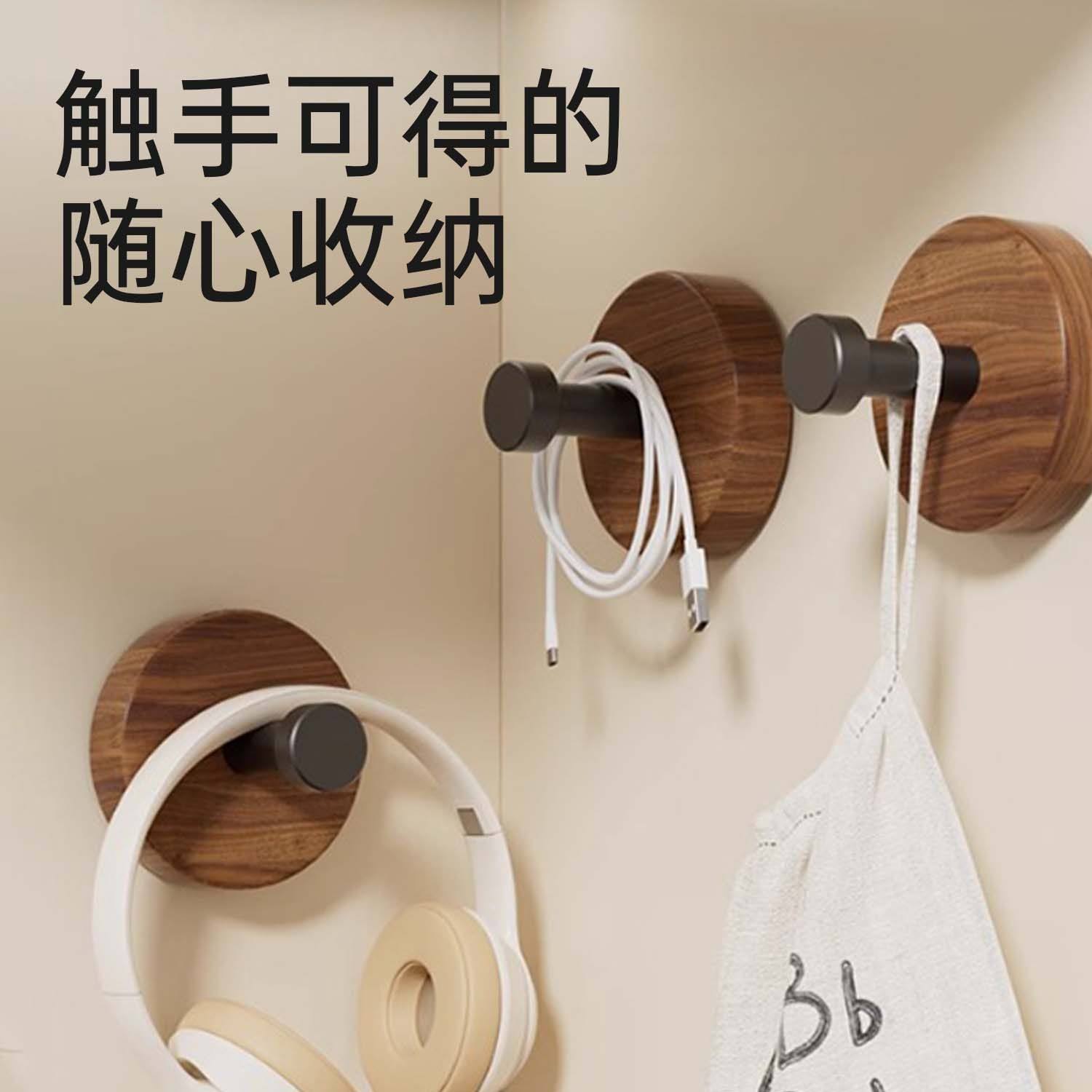 千慕雨胡桃木纹挂钩强力承重粘胶挂钩卫生间厨房免打孔置物挂衣钩