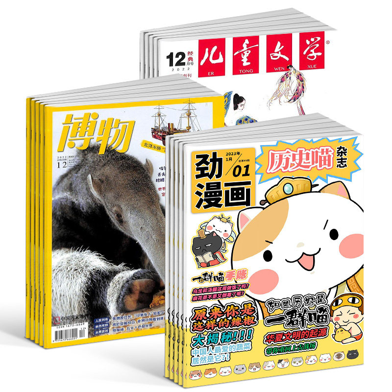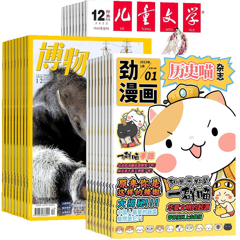 包邮 历史喵+博物+儿童文学(少年版)杂志组合 2026年3月起订 1年共36期 少儿兴趣阅读历史 中小学生自然科普百科全书 杂志铺