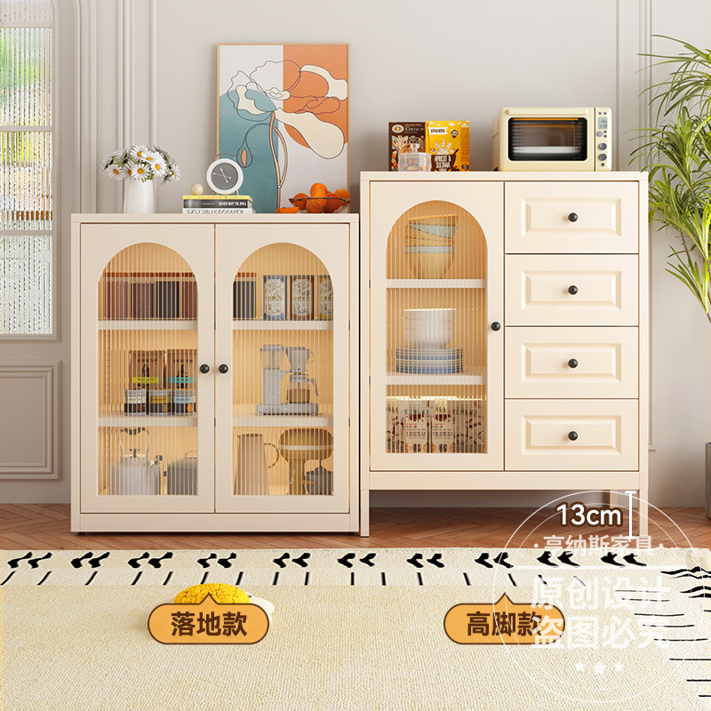 法式铁艺厨房餐边柜客厅长虹玻璃收纳柜置物茶水柜酒柜钢制储物柜
