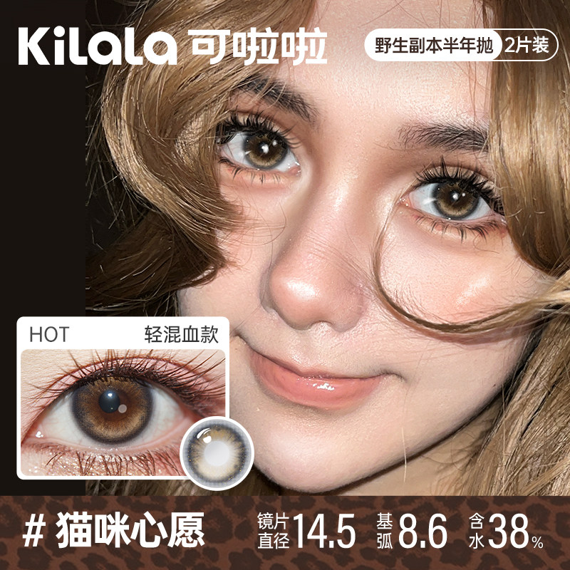 kilala可啦啦野生副本半年抛美瞳2片送护理液混血感彩色隐形眼镜