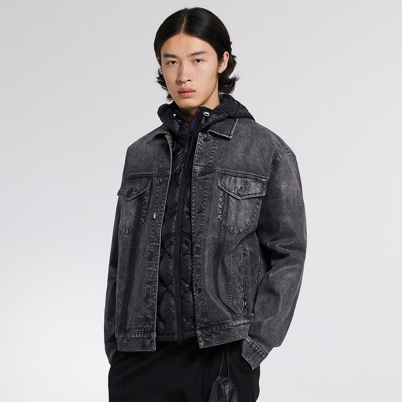 速写outlets奥莱男装春秋夹克牛仔休闲宽松翻领长袖复古外套潮流