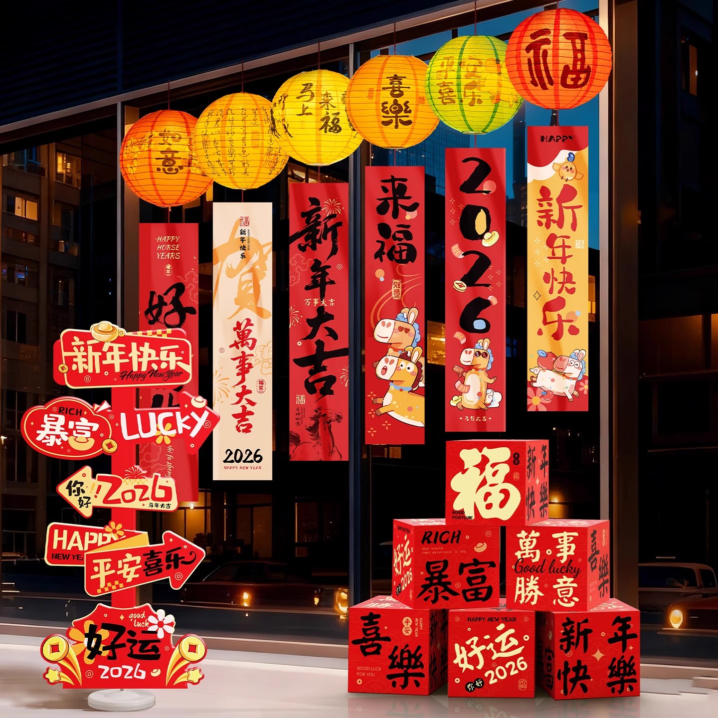 2026新年春节氛围布置红色福字灯笼装饰套装节庆用品礼品布置
