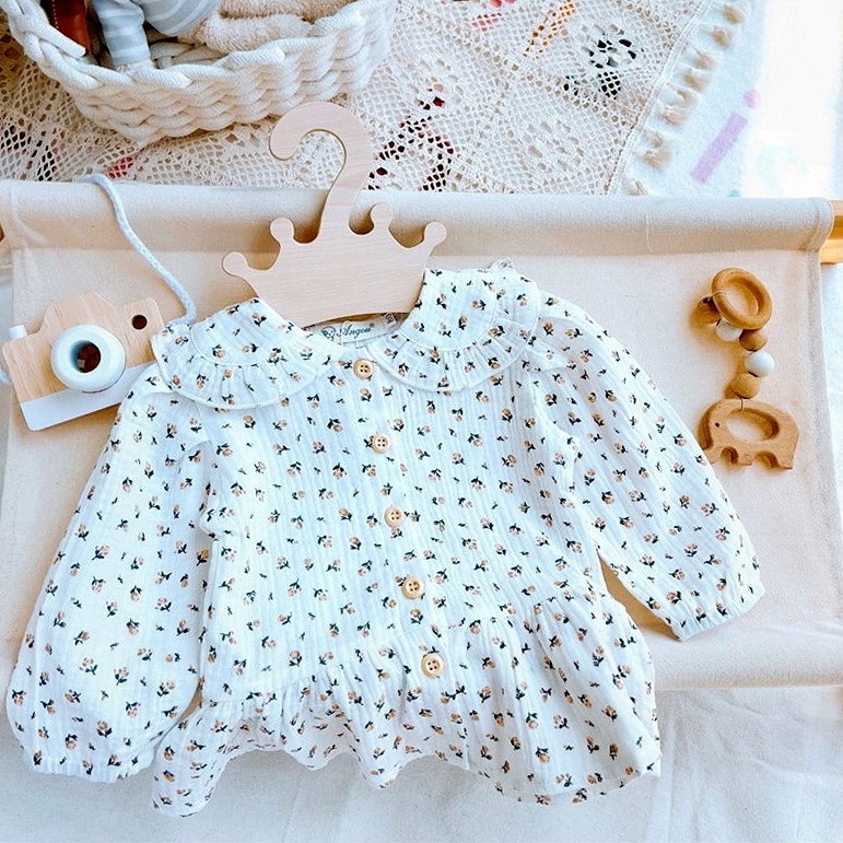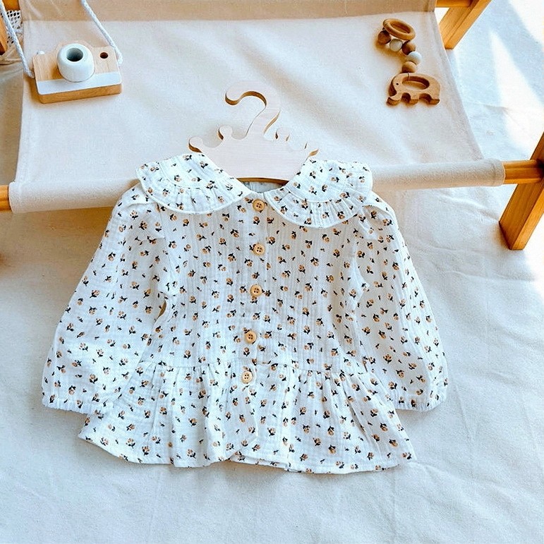 春秋碎花衬衫洋气婴儿宽亲子宝时尚娃娃衫翻领打底衫小清新上衣