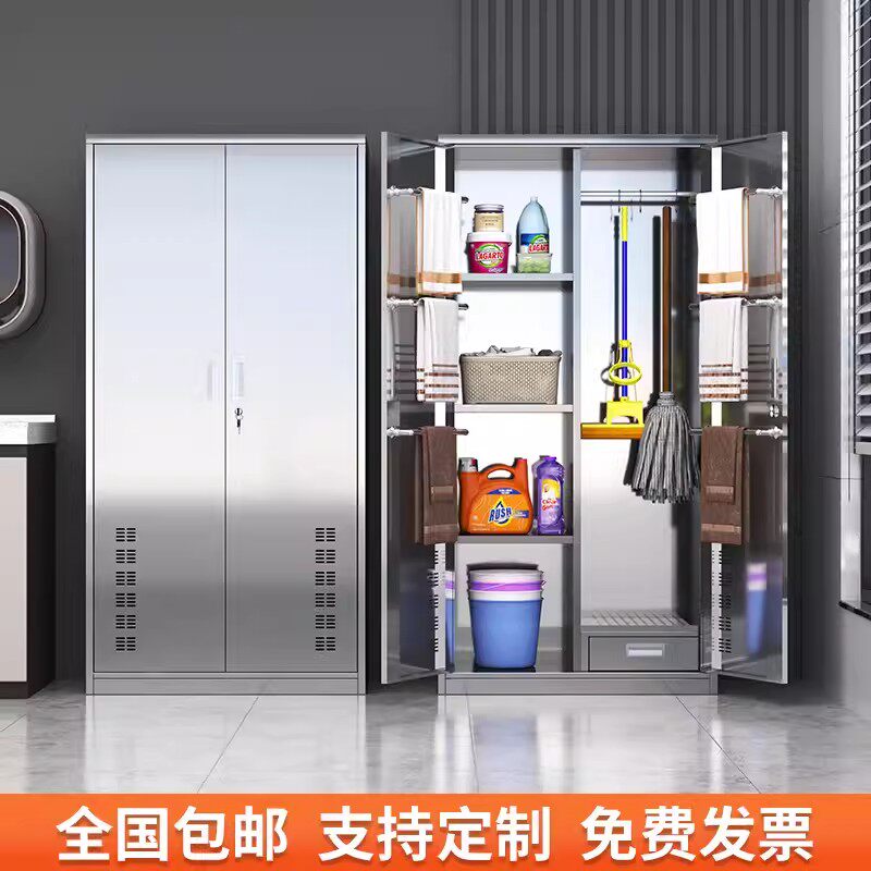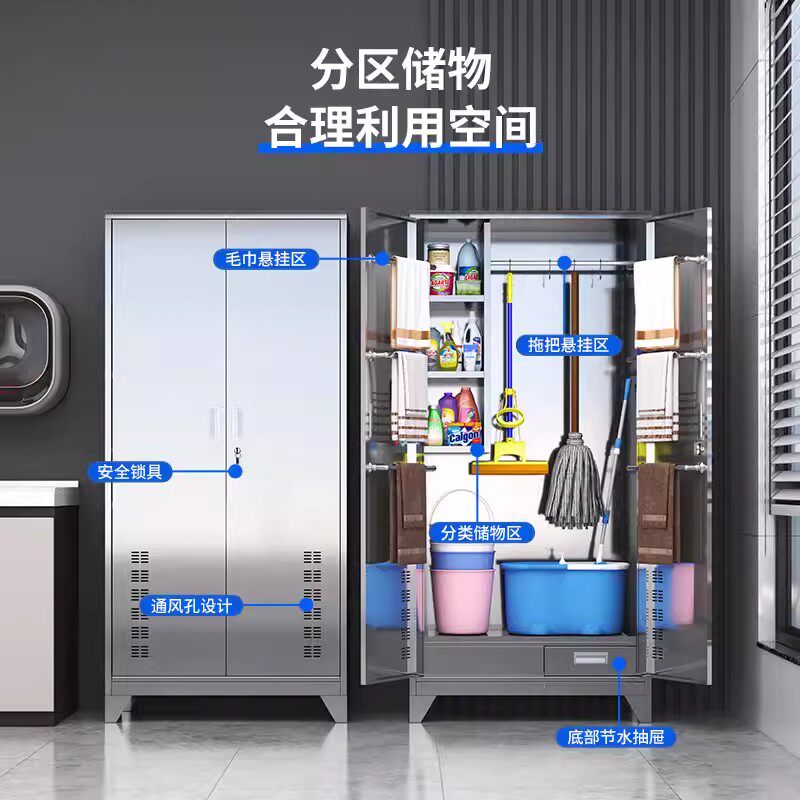 不锈钢清洁柜室外阳台学校拖把扫把杂物收纳储物柜保洁卫生工具柜