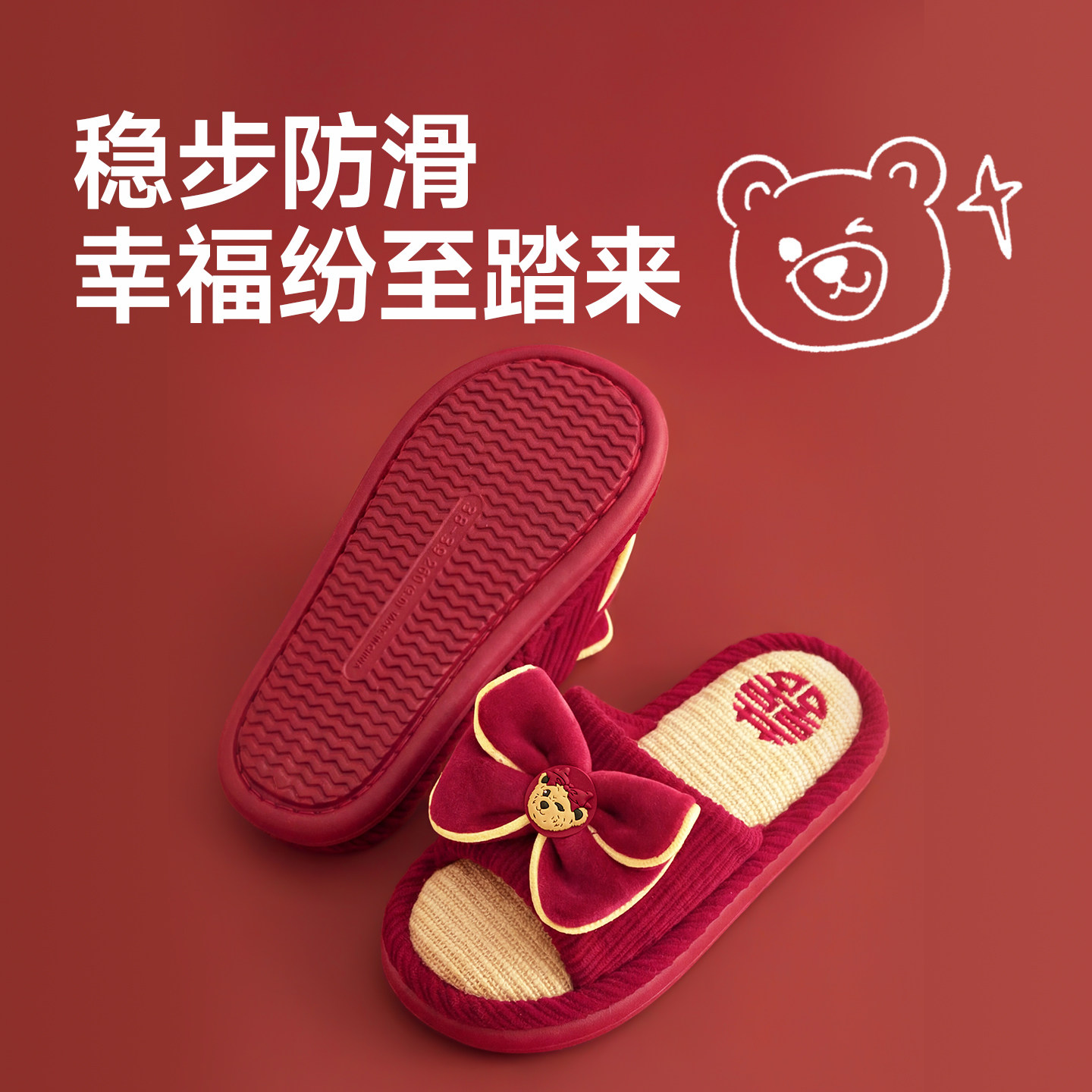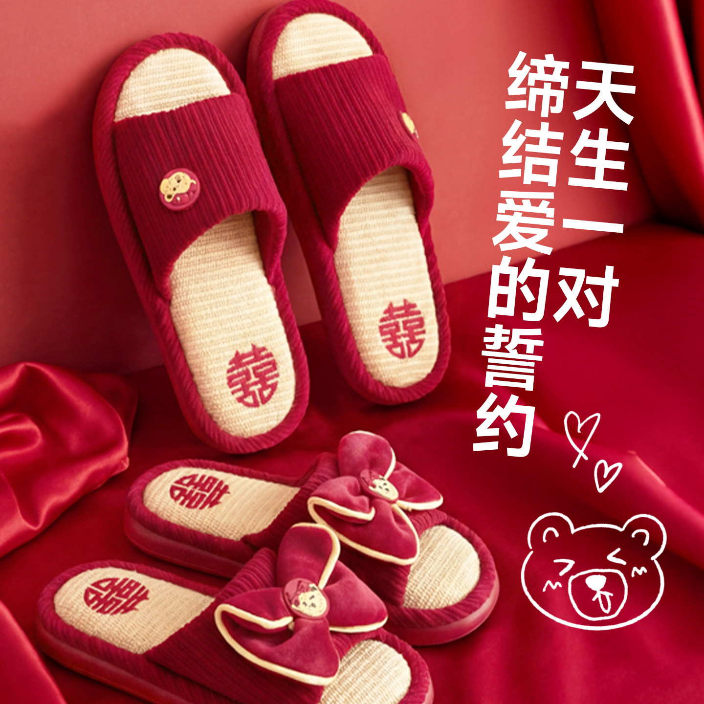 TeenieWeenie红色婚庆情侣拖鞋居家室内结婚喜庆一对鞋子新娘陪嫁