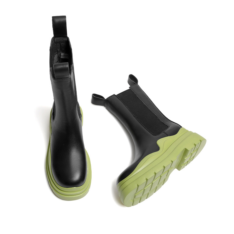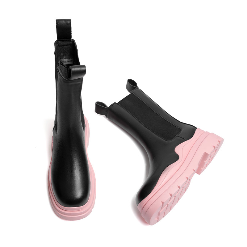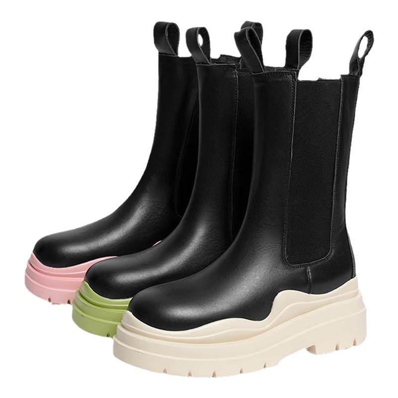 红蜻蜓切尔西靴女鞋冬季新款超酷松紧带口烟筒靴撞色甜美中筒靴女