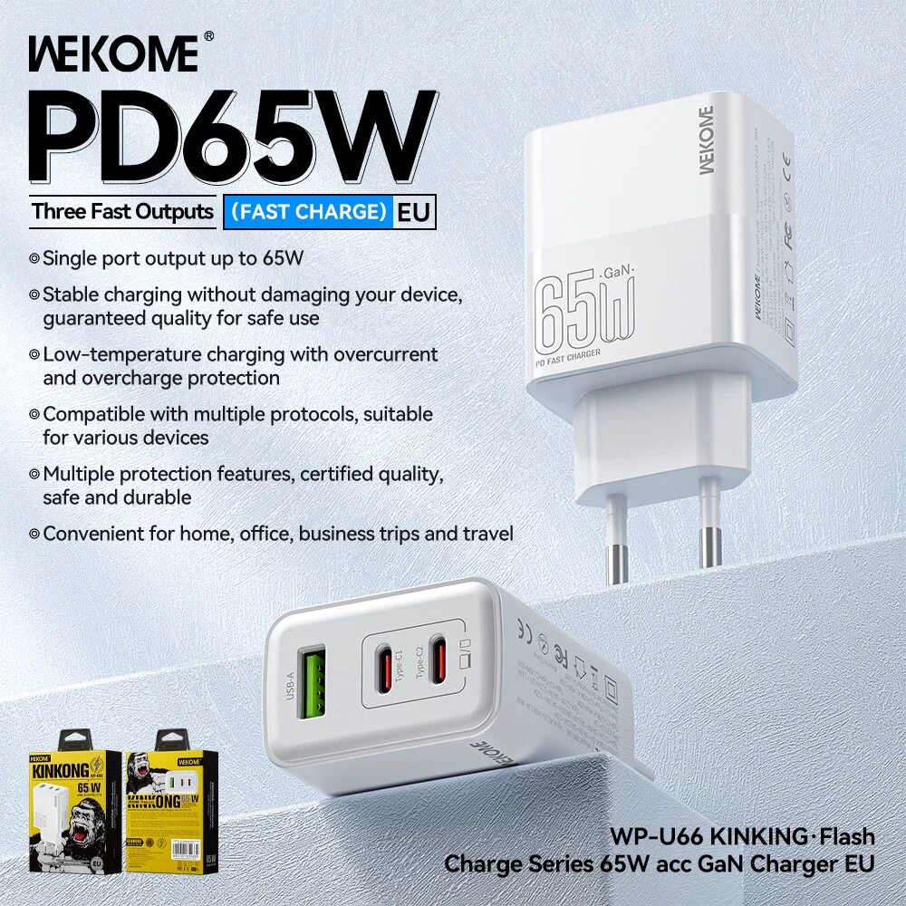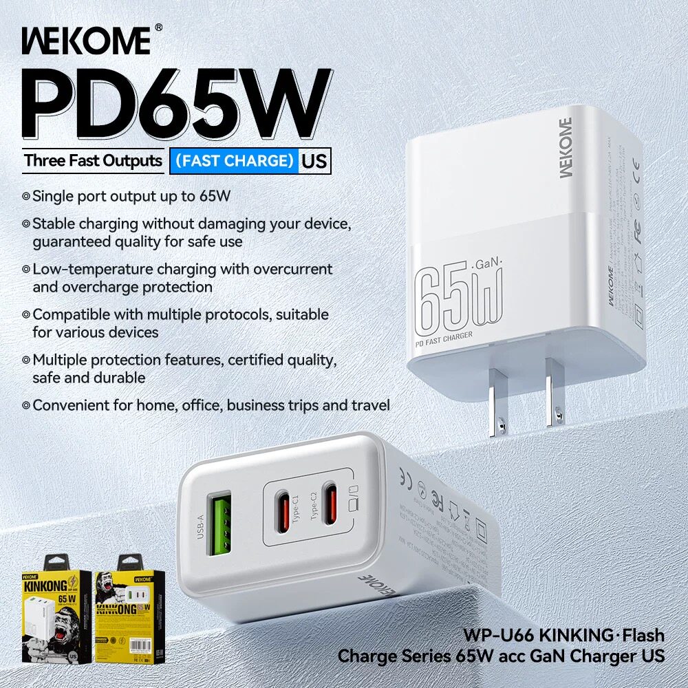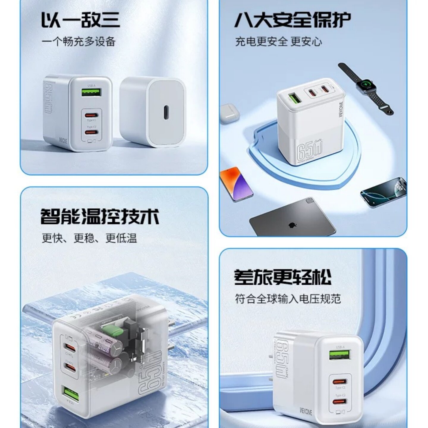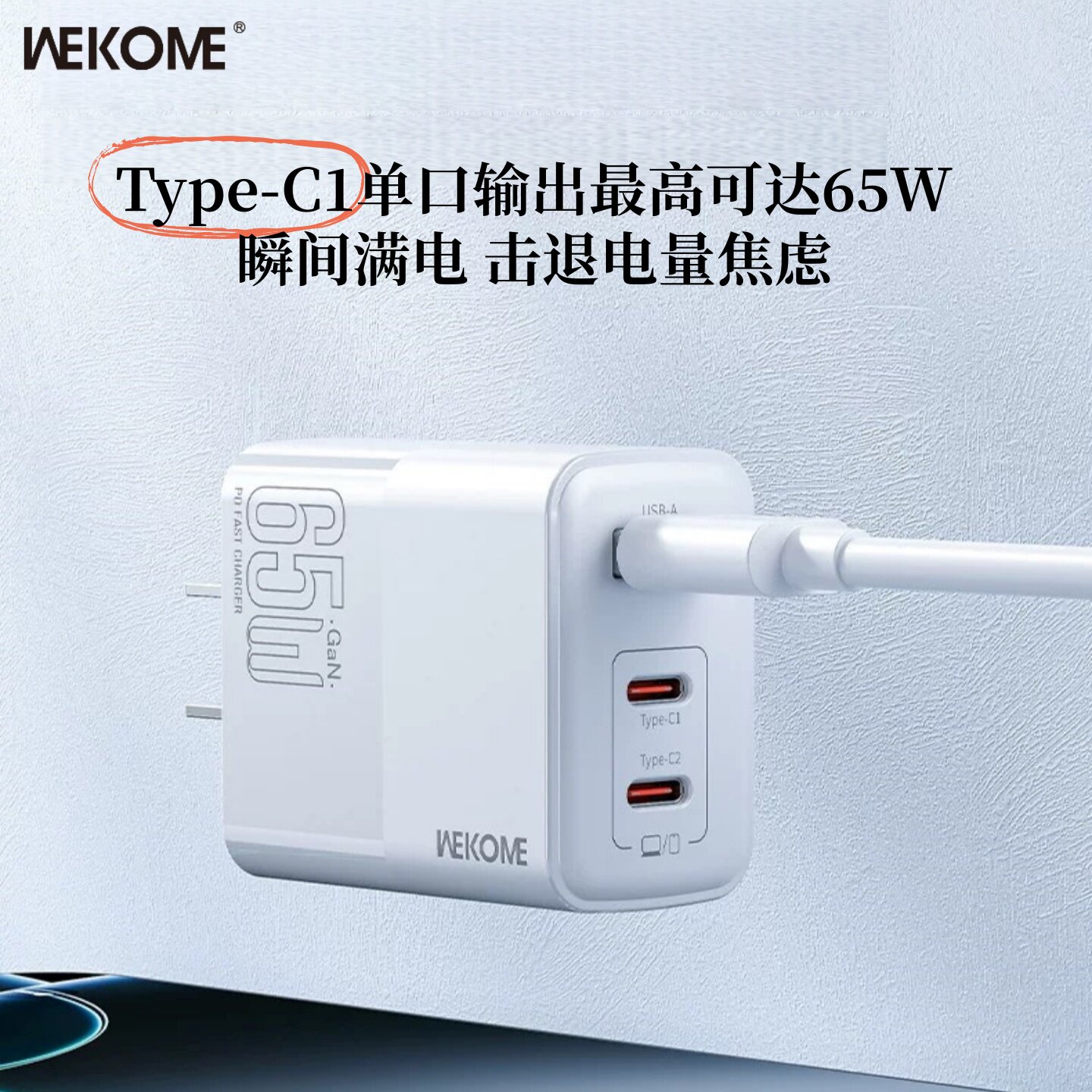 Wekome氮化镓PD65W港澳适用于iphone17快充ipad平板笔记本电脑安卓手机多口type-c插头美英欧规GaN充电器快叉