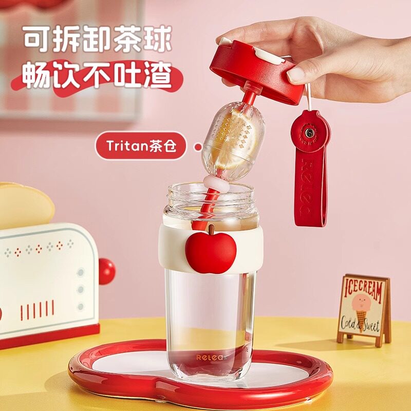 物生物吸管玻璃水杯女生夏季便携随行可爱随行双饮杯子2025新款