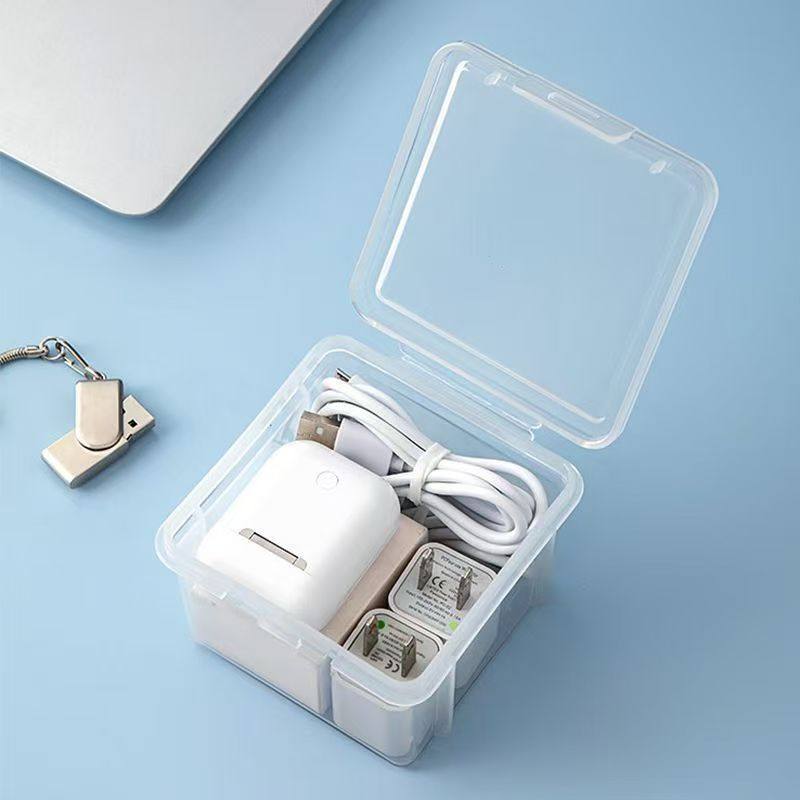 透明翻盖收纳盒大容量整理盒便携储物盒数据线U盘充电器零件