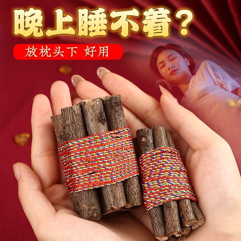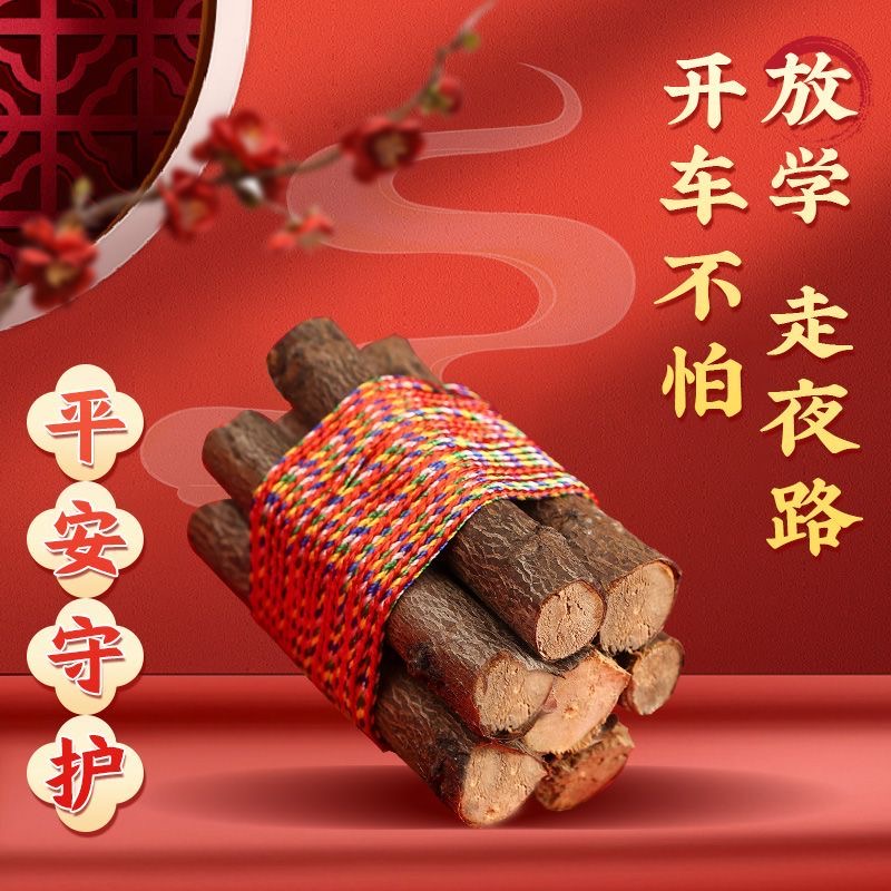 桃木枝真老桃树枝桃木招东南枝棍财压惊随身带五色绳挂件桃枝木雕
