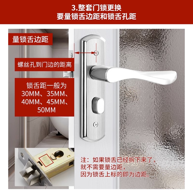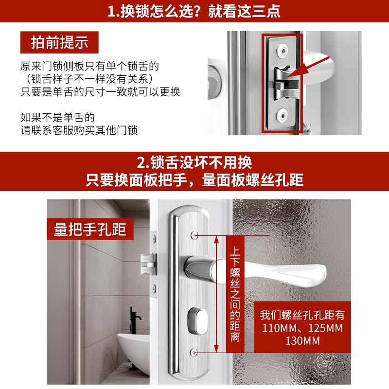 卡贝卫生间不锈钢门锁家用通用型浴室把手锁具厕所洗手间玻璃单舌
