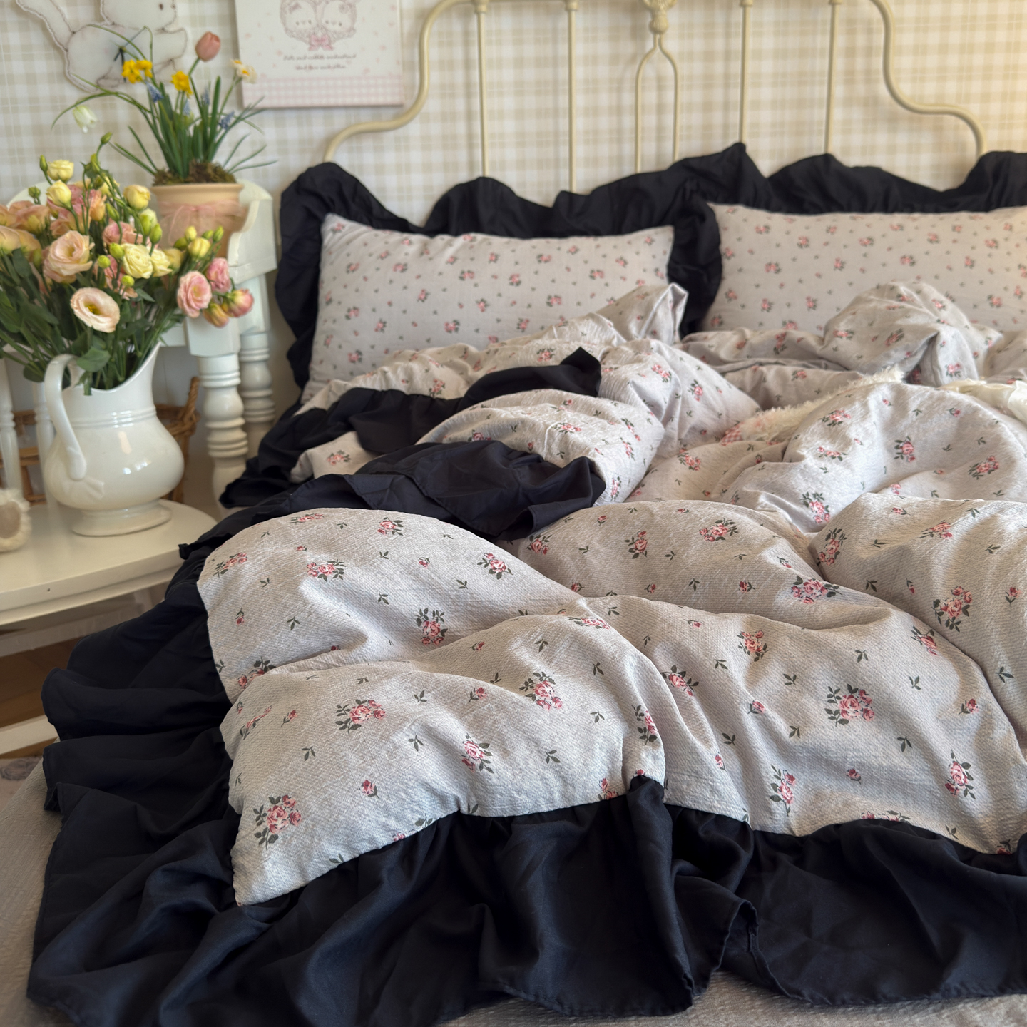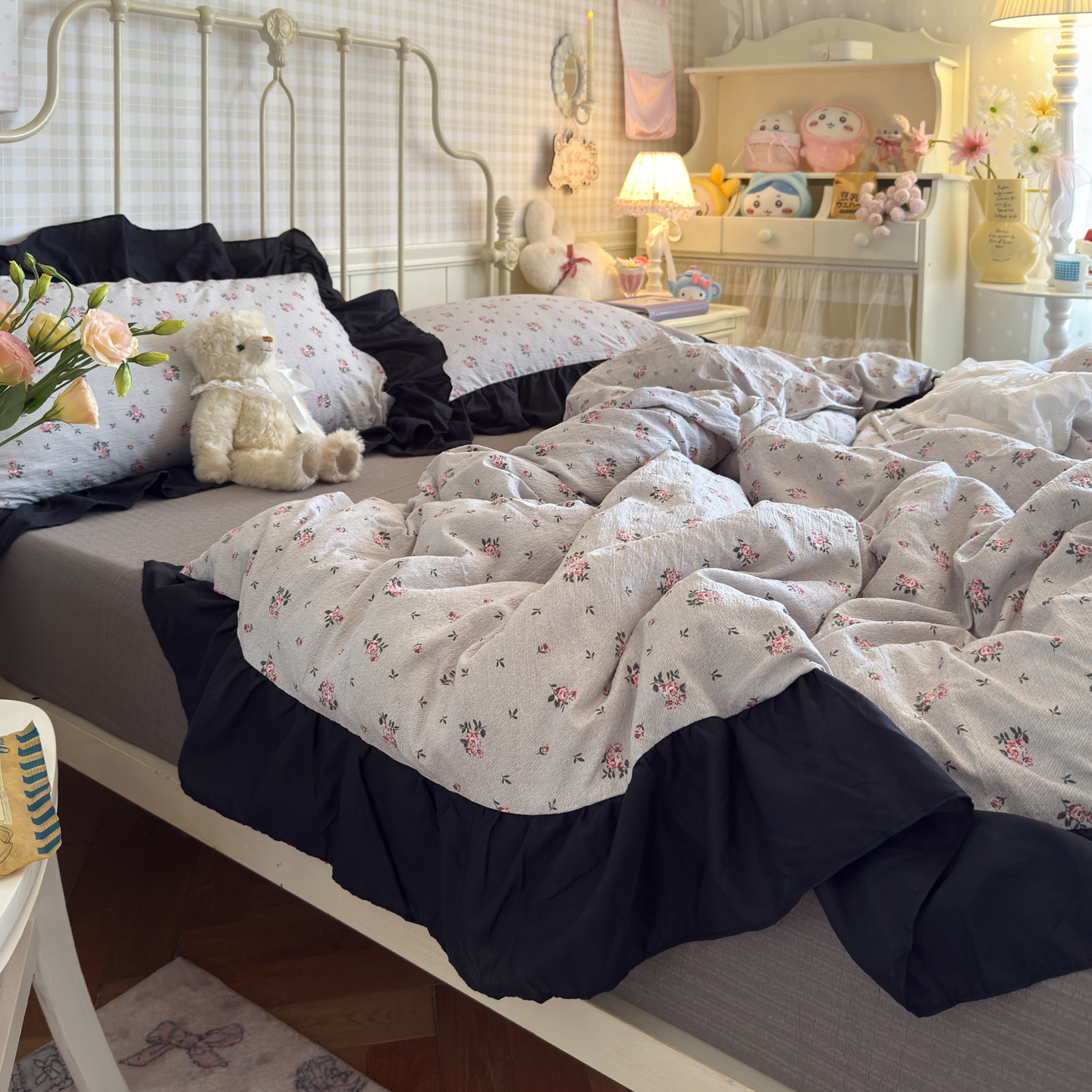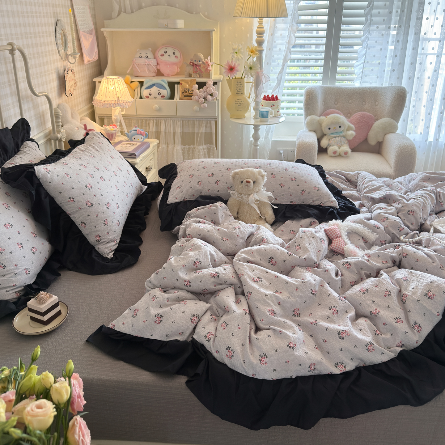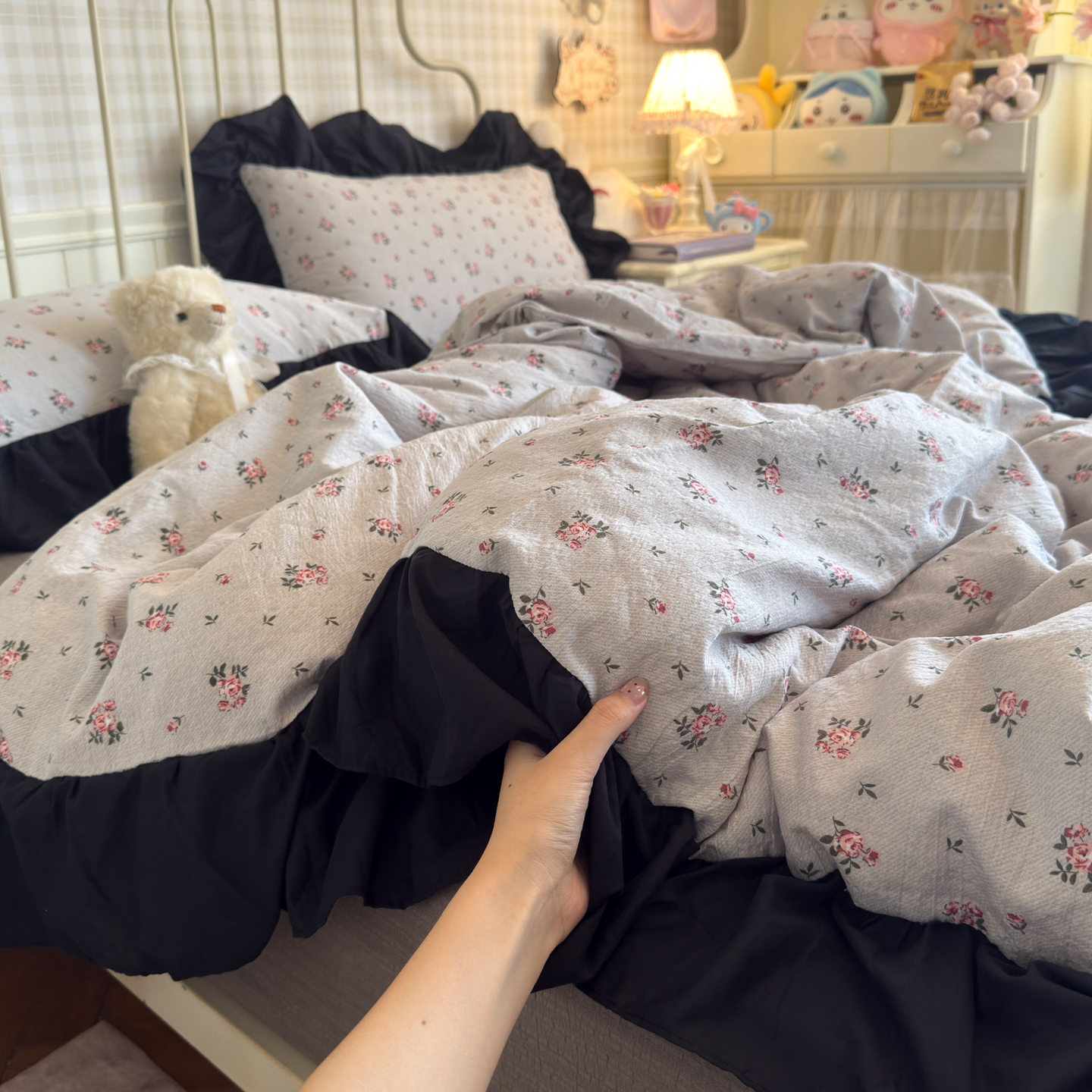 A类碎花皱皱纱花边四件套床裙宿舍被套床单少女心床上三件套用品