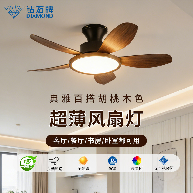 钻石牌吊扇灯2026年新款超薄风扇灯家用一体吊灯餐厅客厅带灯风扇