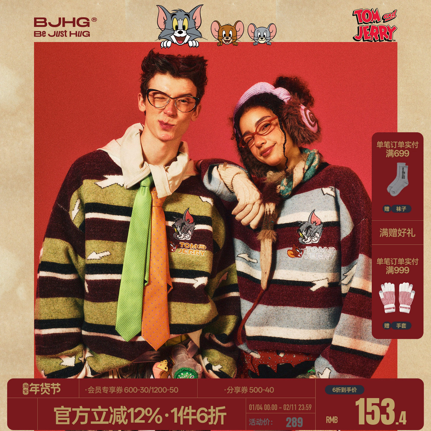 【猫和老鼠联名】BJHG不计后果新年条纹毛衣男装春季情侣装针织衫