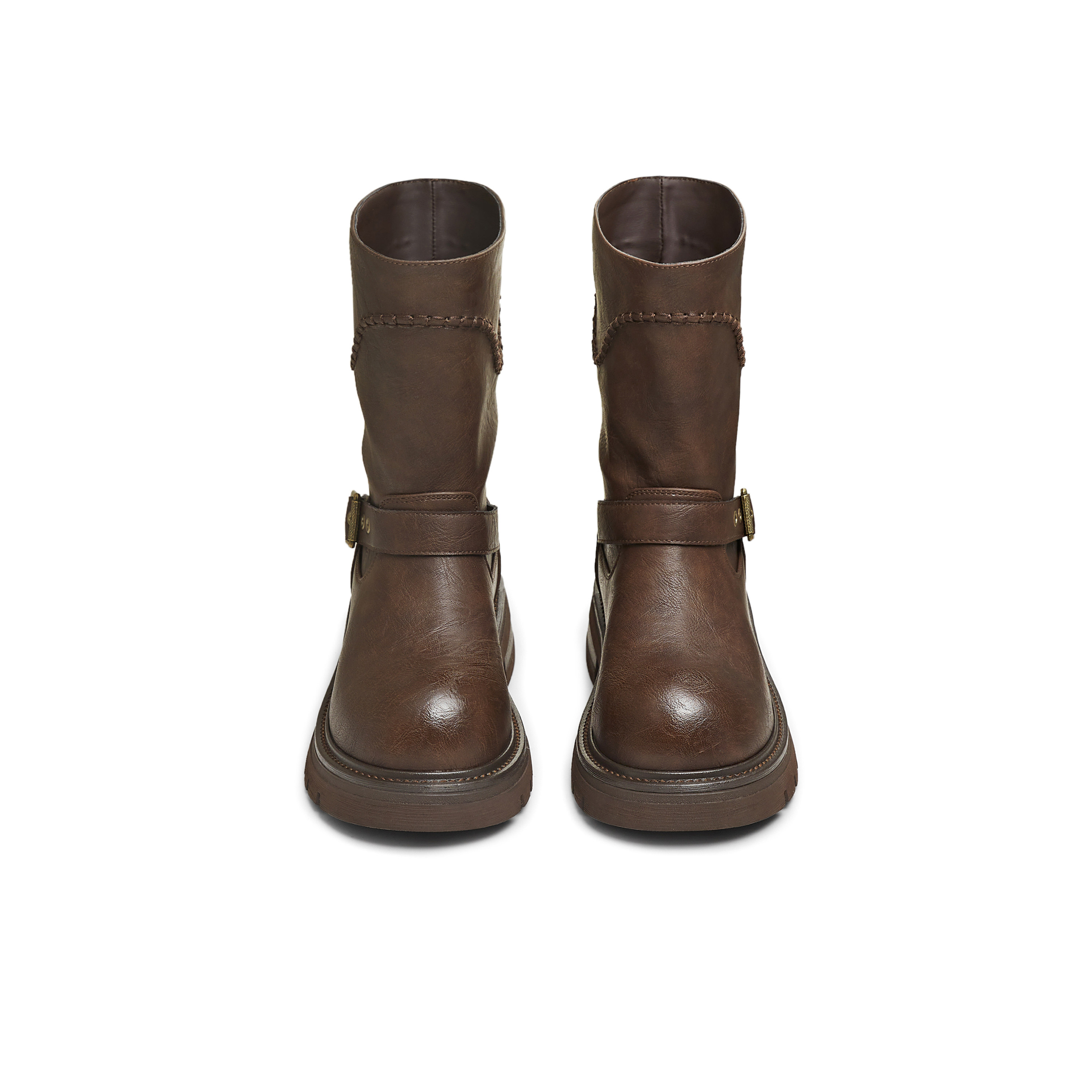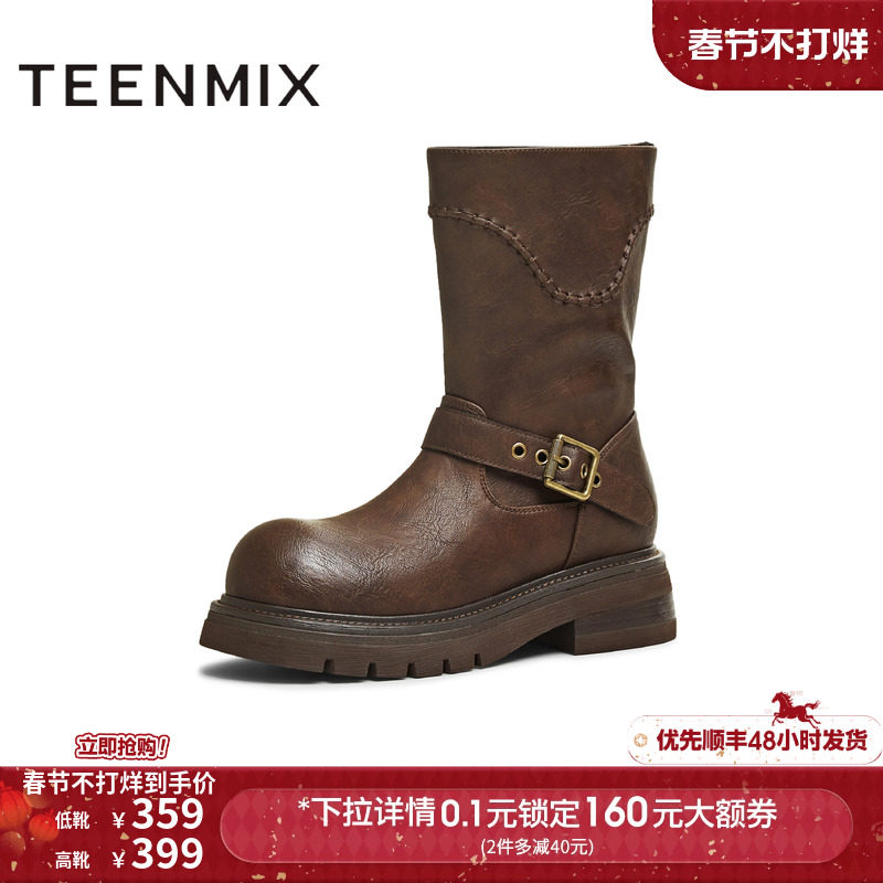 天美意复古厚底西部靴短靴骑士靴长靴女鞋子高筒时装靴2025冬新款