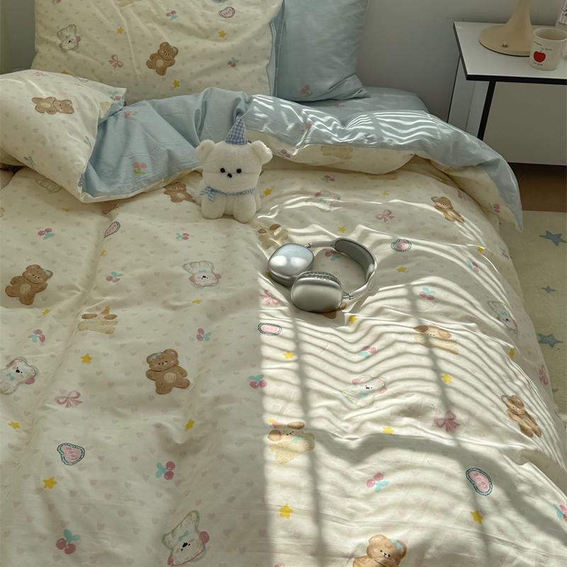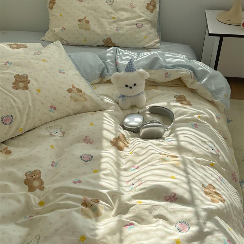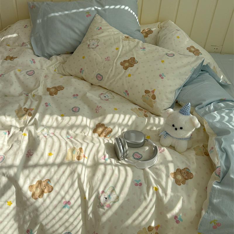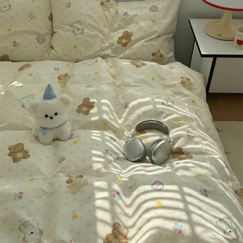 梨梦 奶油甜心熊 少女心可爱卡通纯棉四件套全棉床单被套床上用品