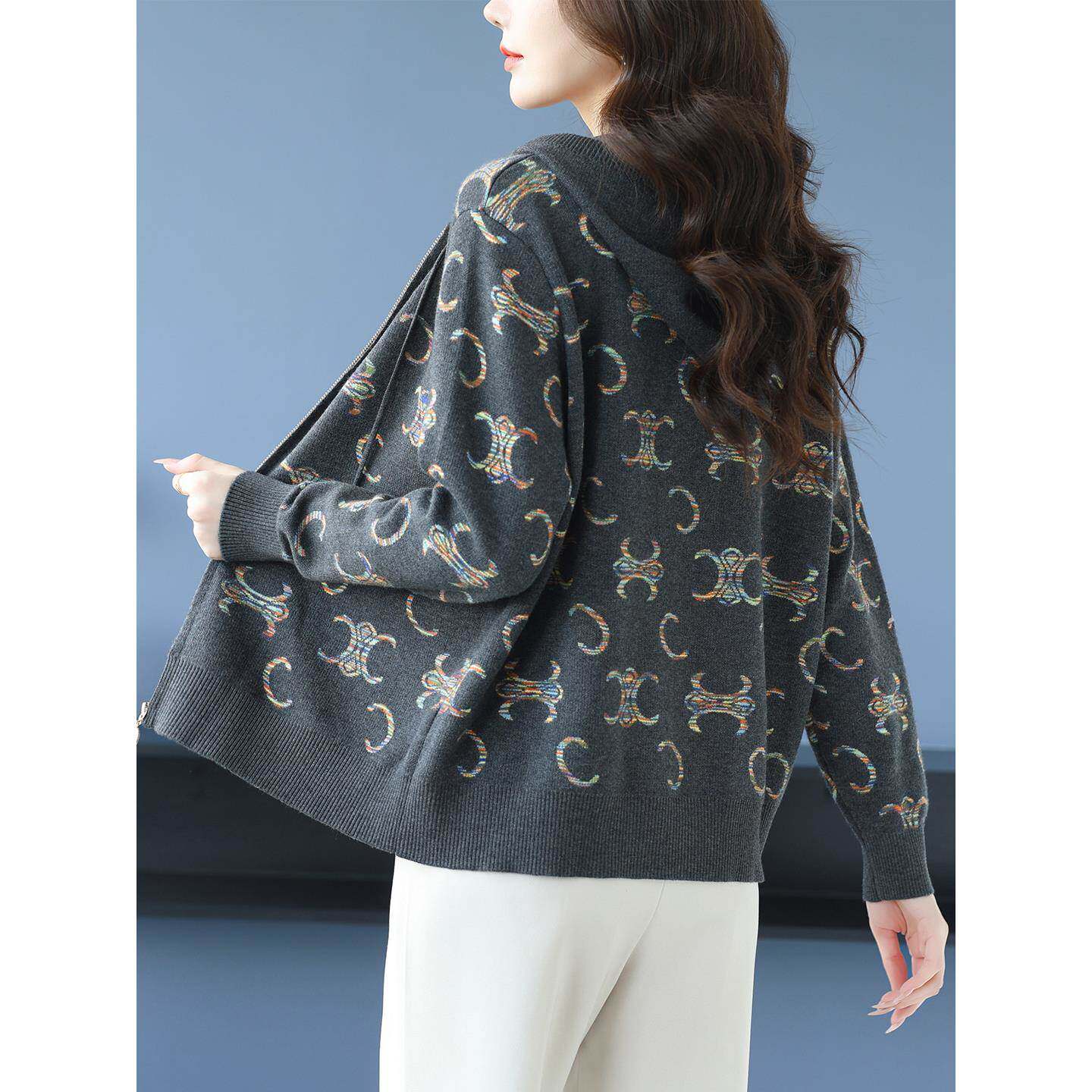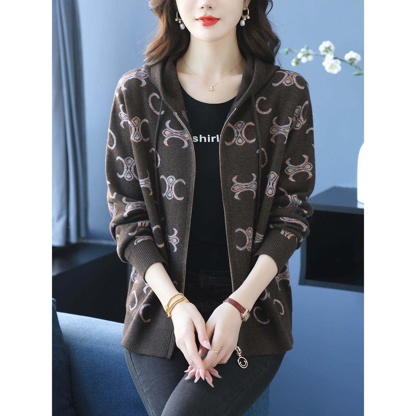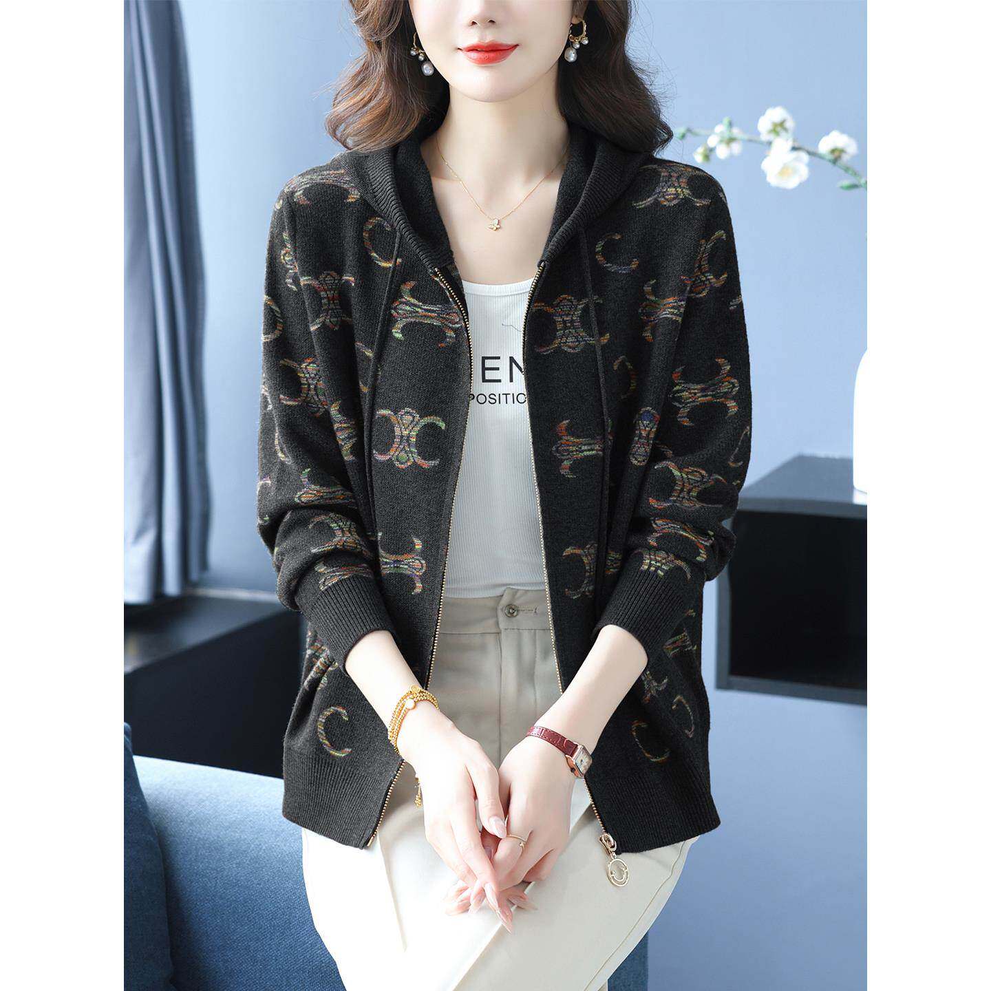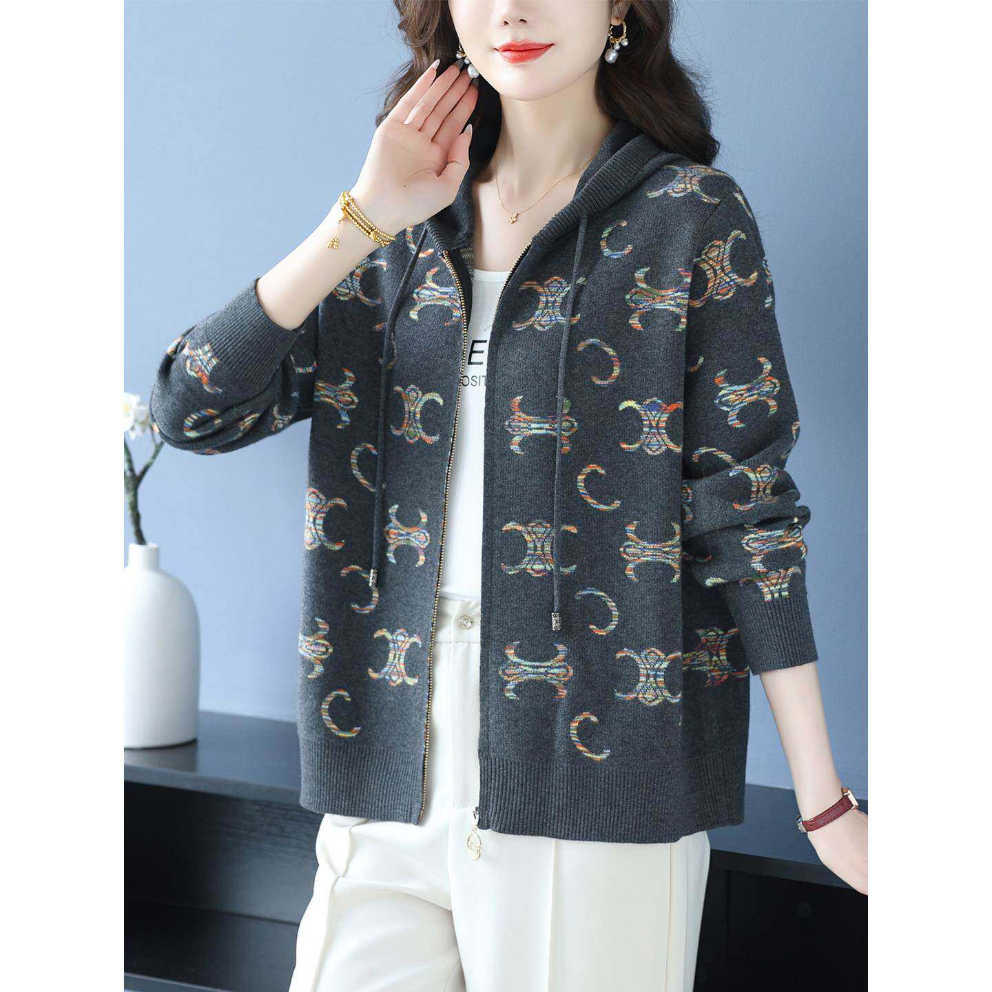 女士连帽卫衣短外套秋季2025新款中年妈妈小个子针织开衫春秋上衣