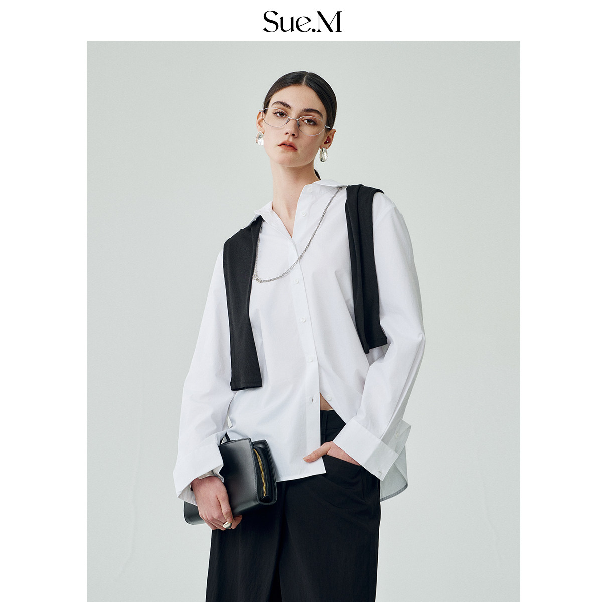 Sue.M 高支长绒棉通勤白衬衫25秋易打理L*MJ极简翻袖口胶囊衬衣女